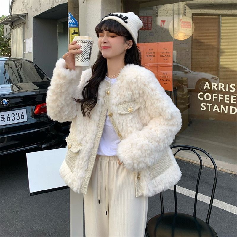 Xiaoxiangfeng 양고기 양모 두꺼운 느슨한 짧은 코트 여성 가을, 겨울 2025 기질 하이 엔드 연예인 플러시 벨벳스토어 가기