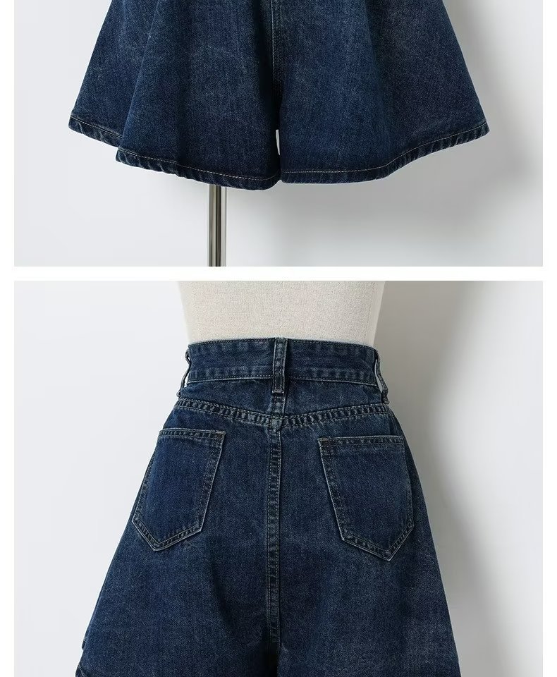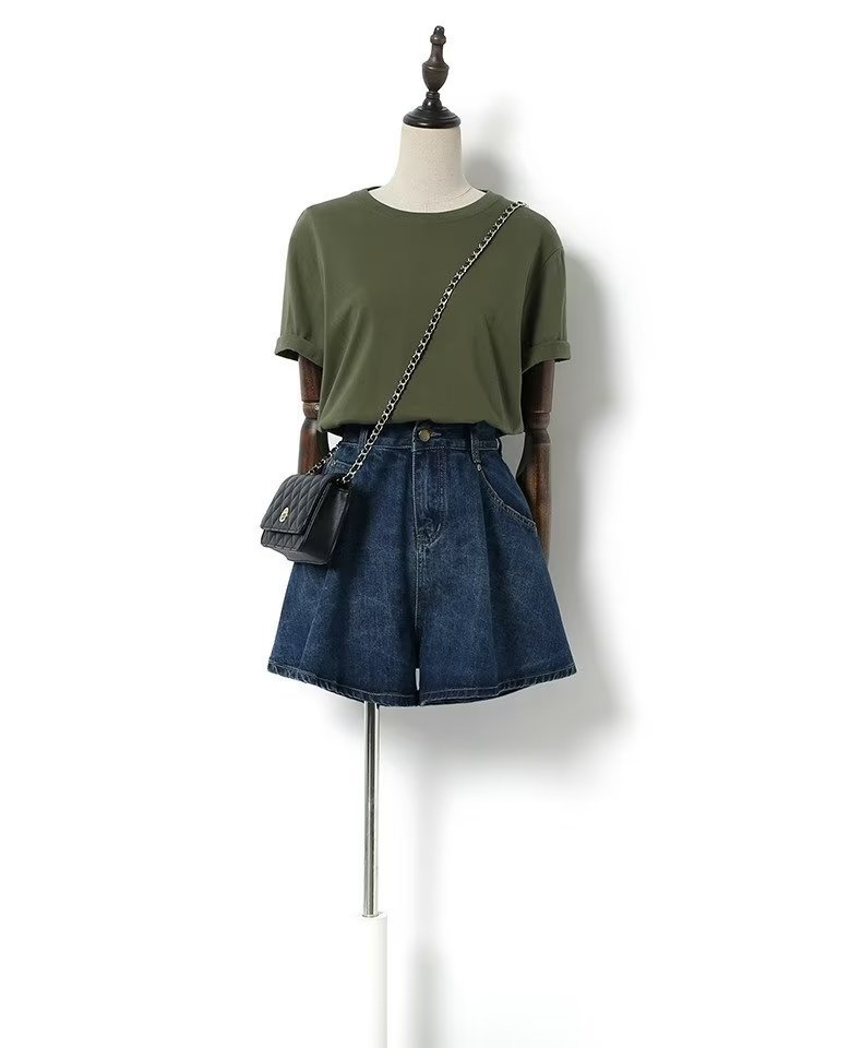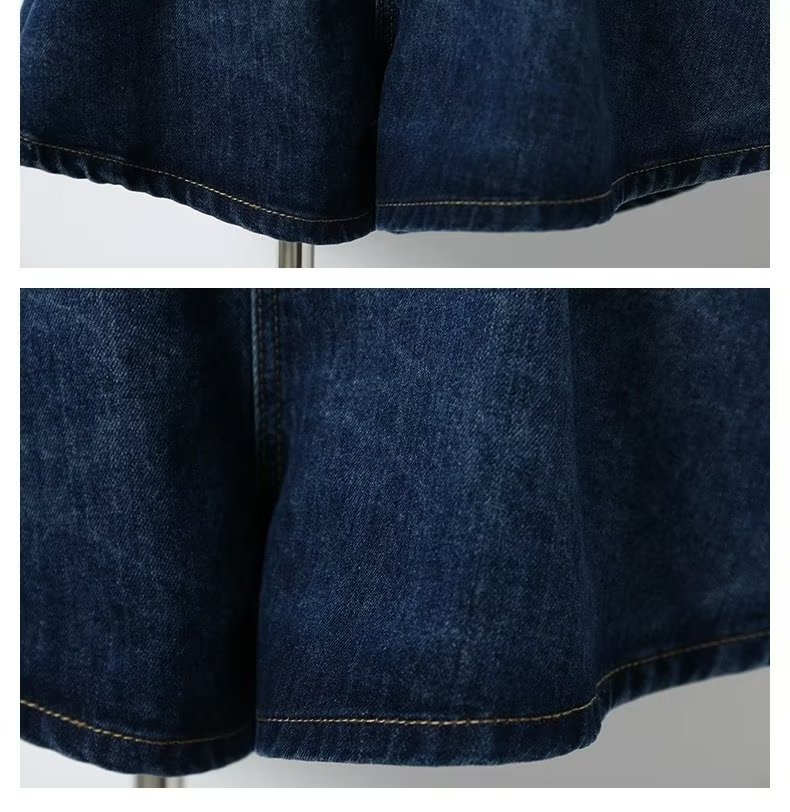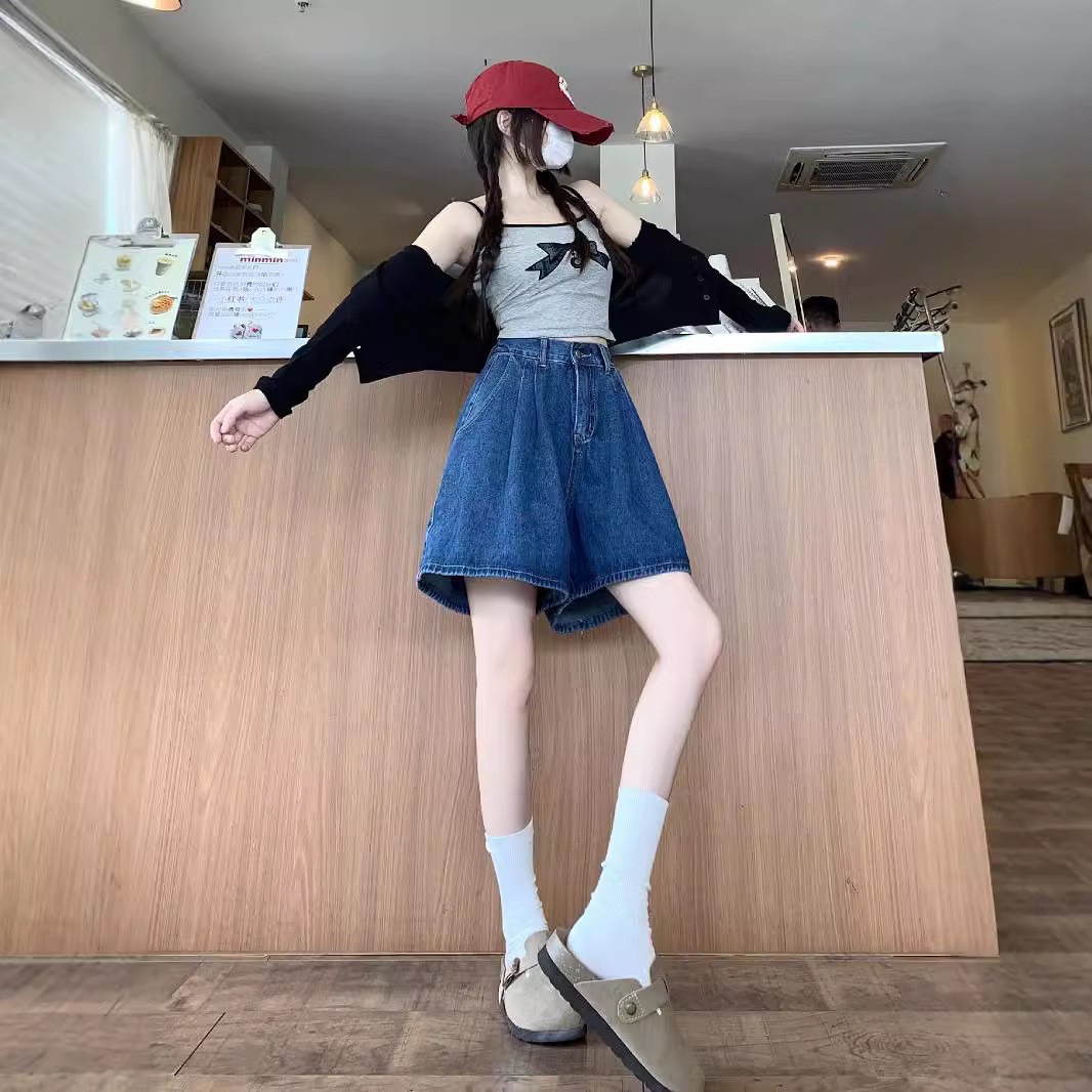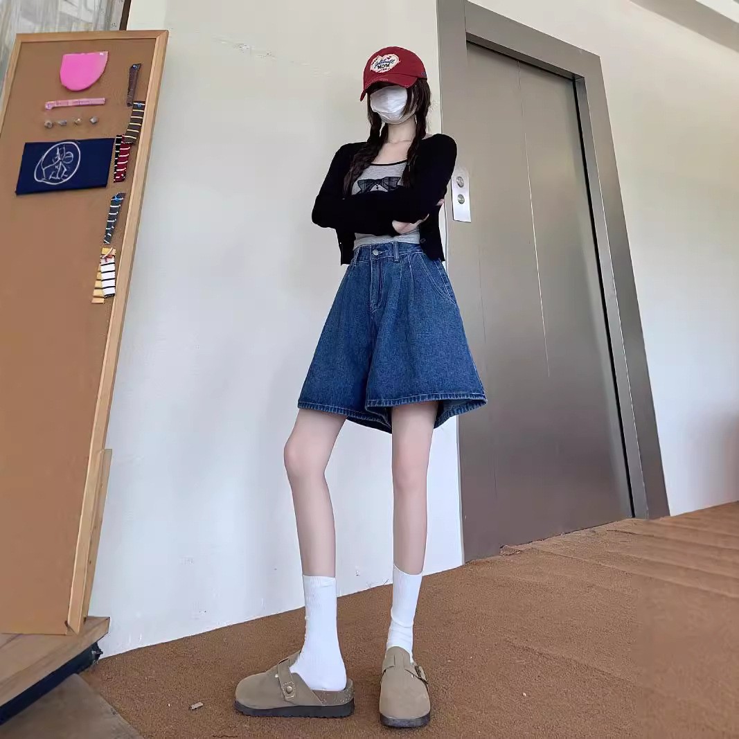 여름 얇은 넓은 다리 데님 반바지 여성 배 모양의 높은 허리 대형 통통녀 덮고있는 슬리밍 A 자 모양의 뜨거운 바지스토어 가기