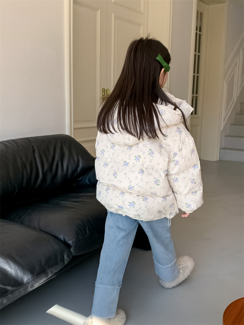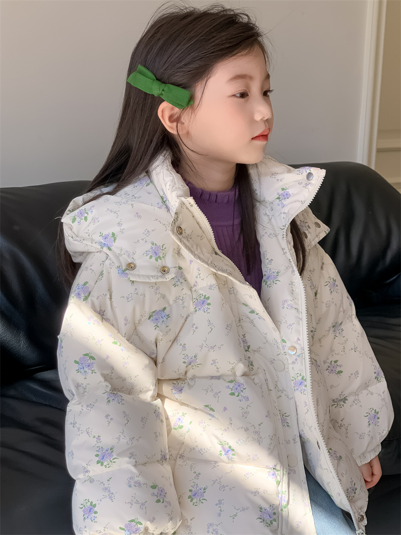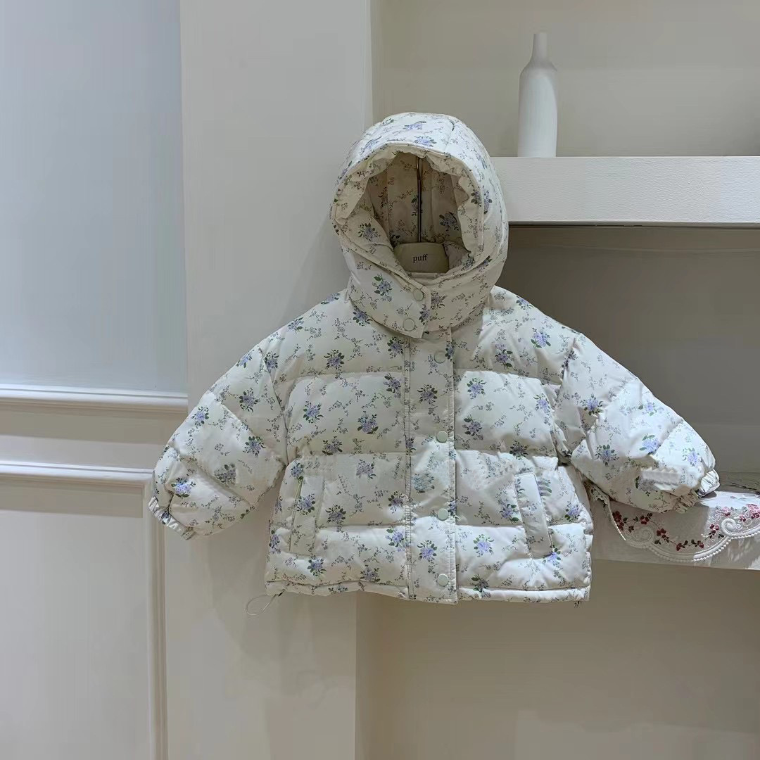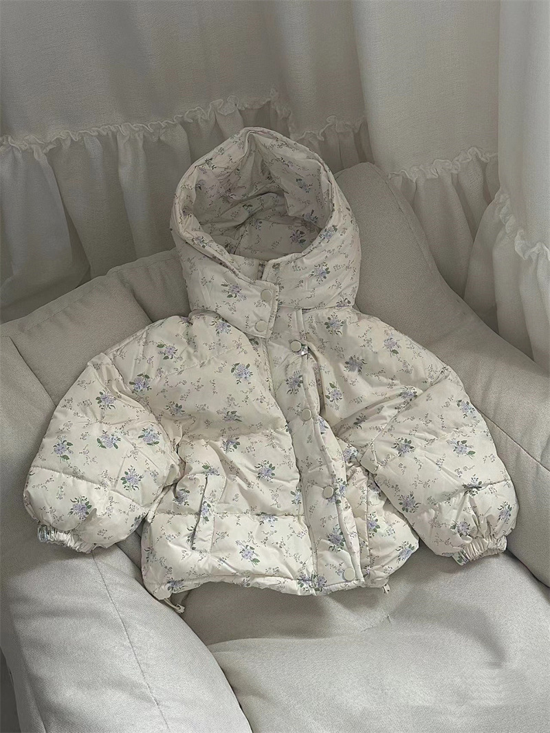 꽃과 소녀 다운 재킷 겨울 2024 새로운 작은 신선한 꽃 후드 화이트 오리 다운 따뜻한 코트 조수스토어 가기
