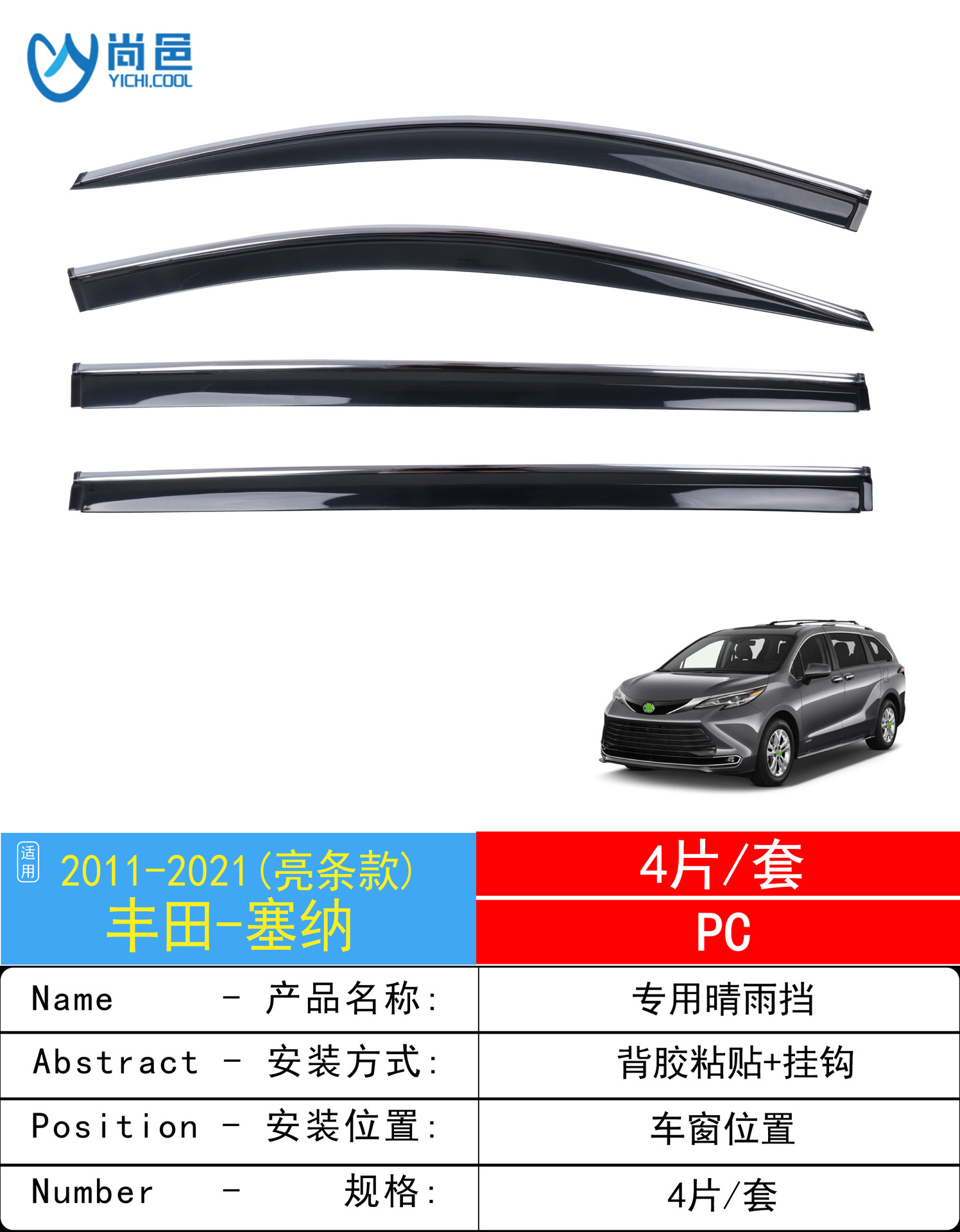 2011-22 Toyota Senna Sienna 창 보호 비 방지 아크릴 자동차 비 방패의 국경 간 응용 프로그램