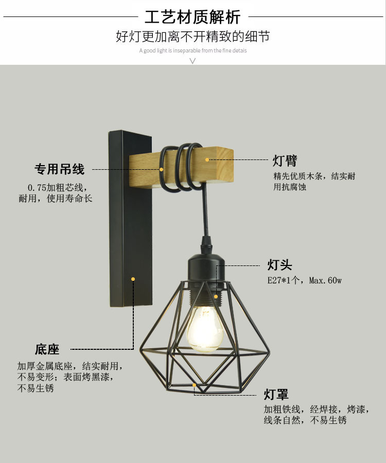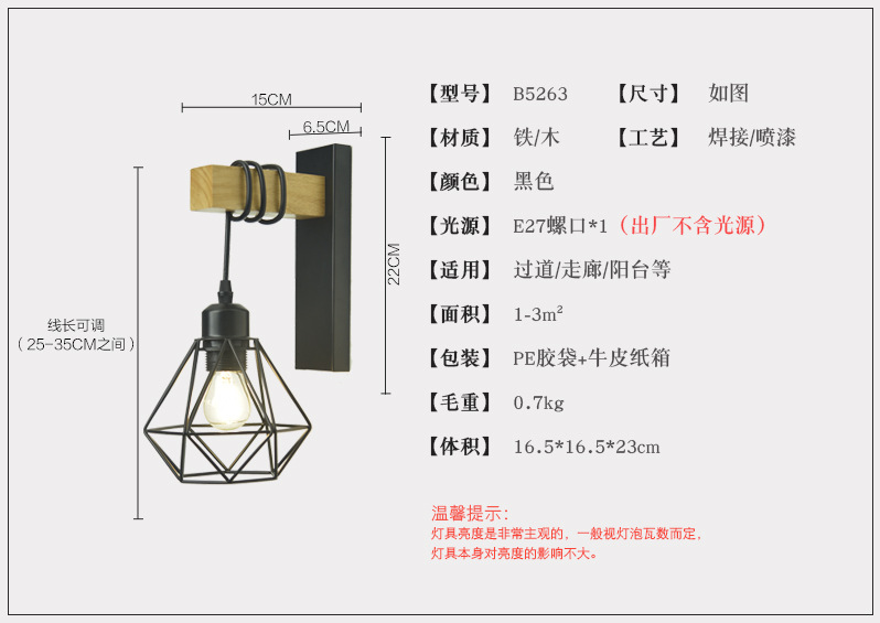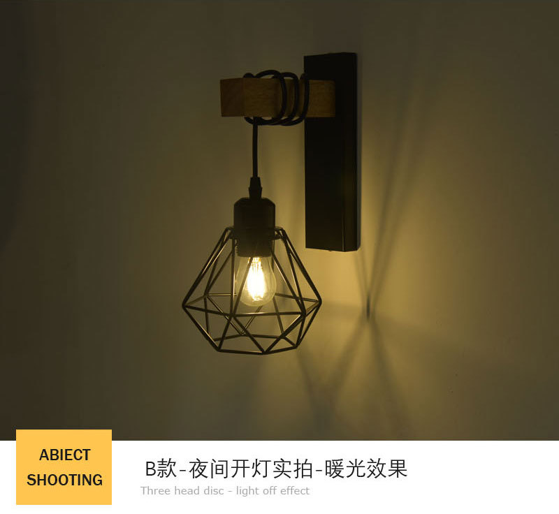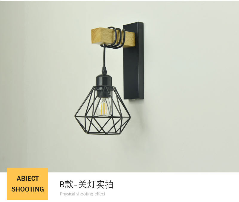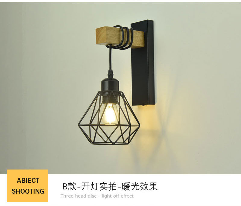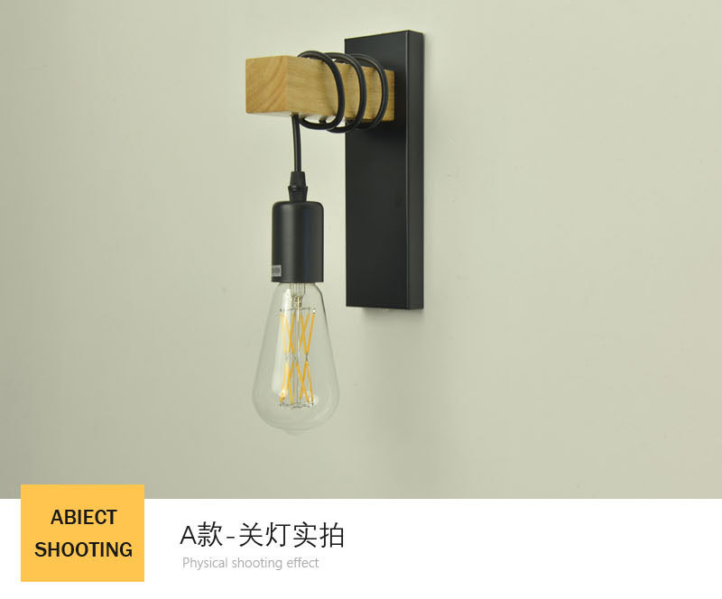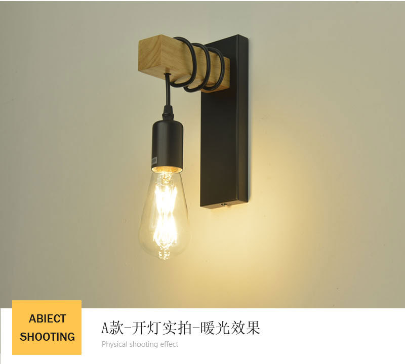 산업 복고풍 스타일 단철 벽 램프 싱글 헤드 복도 통로 벽 램프 2023 크로스 보더 우드 벽 램프 도매스토어 가기