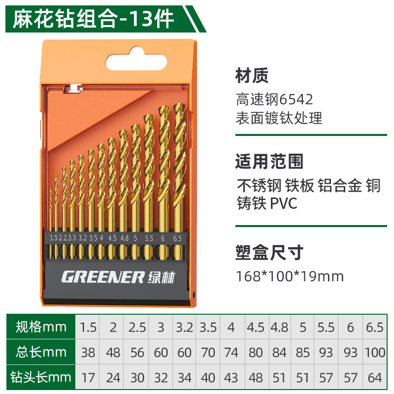 녹색 숲 트위스트 드릴 세트 합금 스테인레스 스틸 특수 고경도 코발트 철 콘크리트 목공 드릴링