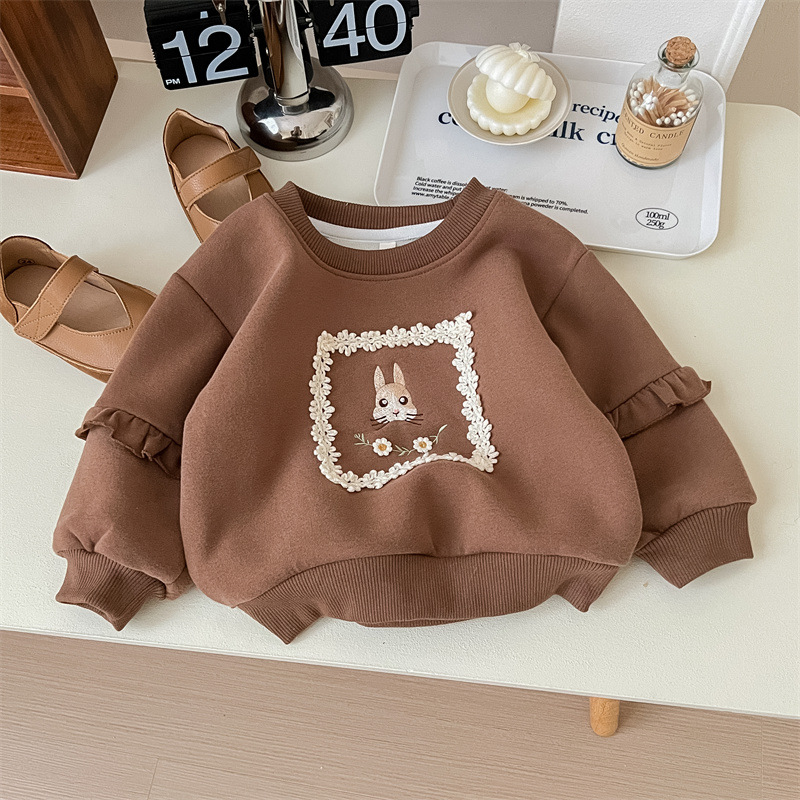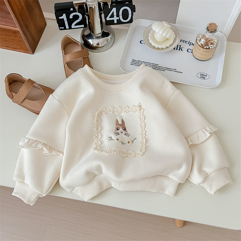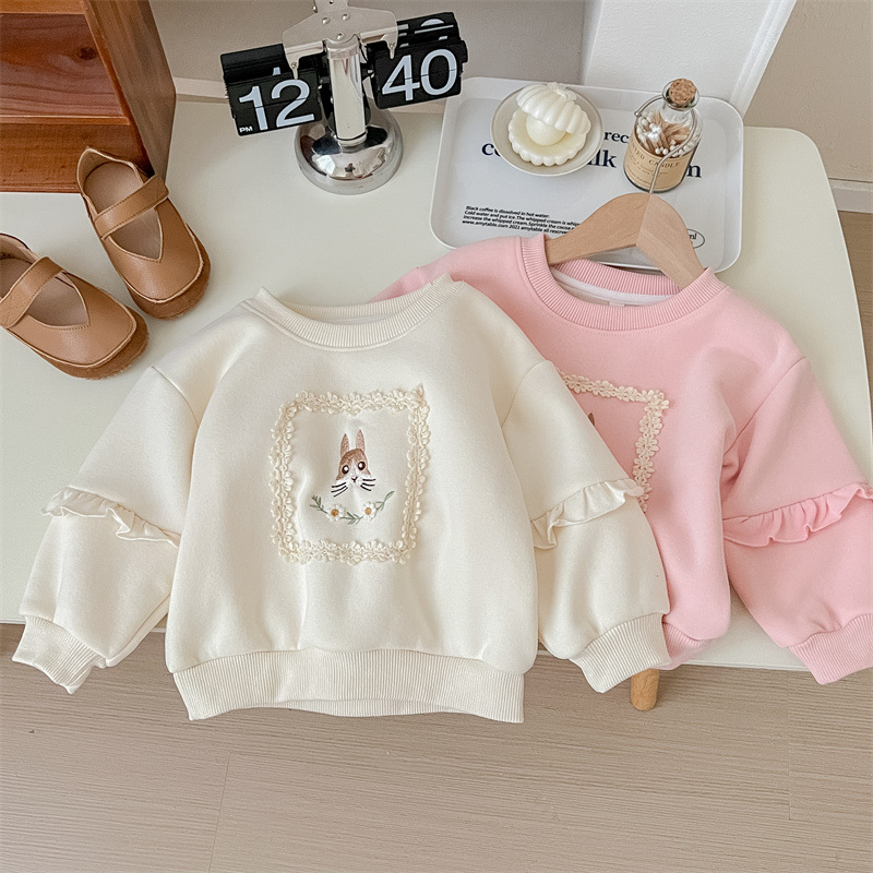 2024년 신상 여아 가을 겨울 기모 안감 두꺼운 아동복 따뜻한 상의 귀여운 만화 캐릭터 디자인