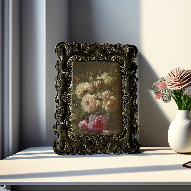 6 인치 북유럽 복고풍 간단한 유럽 복고풍 블랙 조각 사진 벽 수지 사진 프레임 테이블