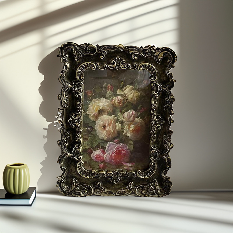 6 인치 북유럽 복고풍 간단한 유럽 복고풍 블랙 조각 사진 벽 수지 사진 프레임 테이블스토어 가기