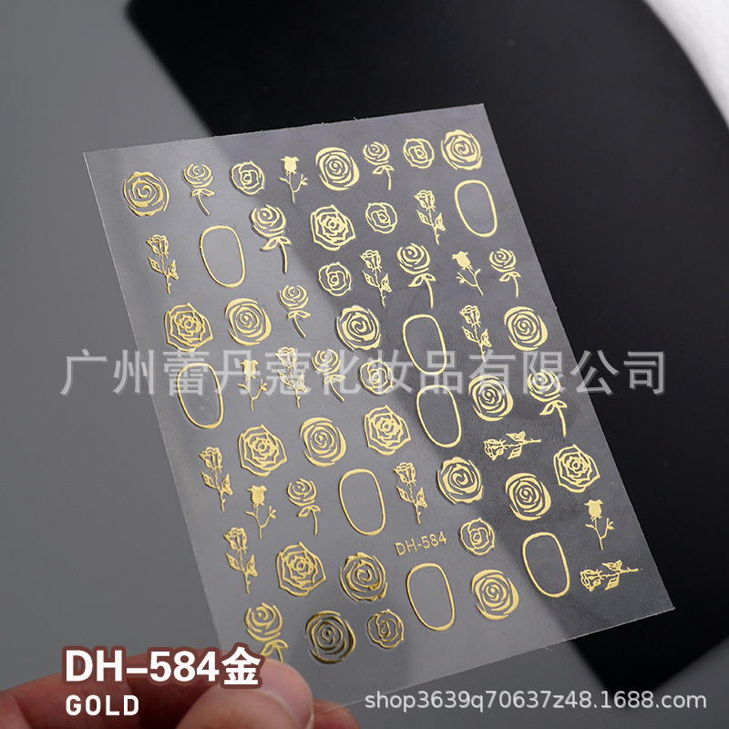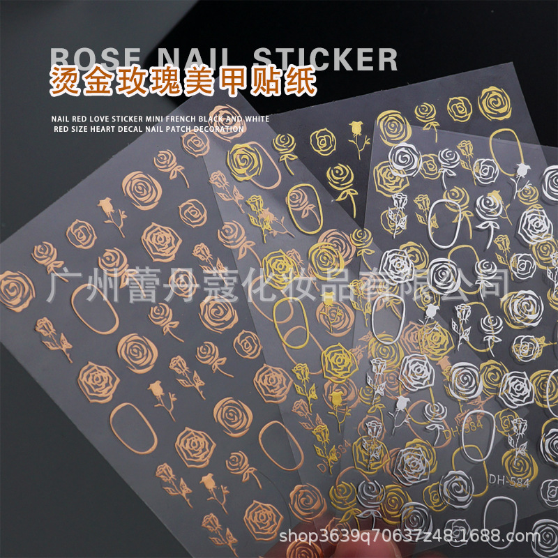공장 폭발 3D 3 차원 네일 아트 스티커 뜨거운 금과 실버 장미 접착제 네일 데칼 장식 장식품 중공스토어 가기