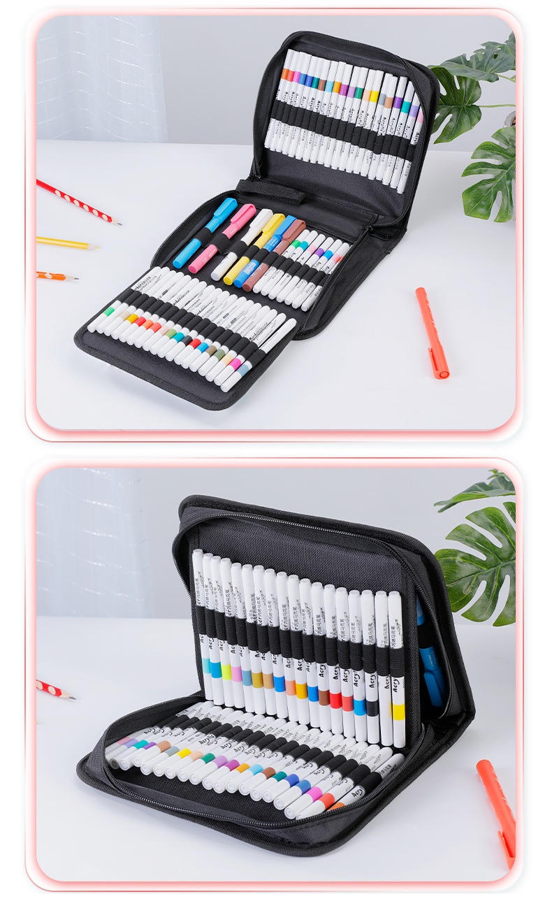 블랙 캔버스 마커 펜 가방 대형 보관 가방 12/24/36/48/60/72/80/120 펜 가방스토어 가기