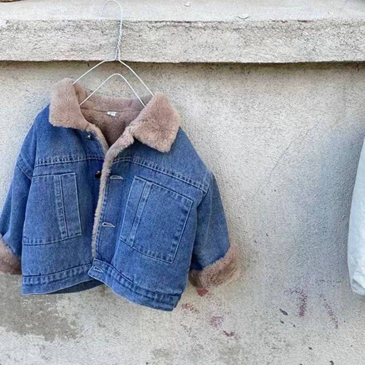 소년 소녀 겨울 코트 아기의 서양 스타일 어린이의 독특한 유행 한국 스타일 마오 마오 데님 옷깃 두꺼운 유행 재킷스토어 가기