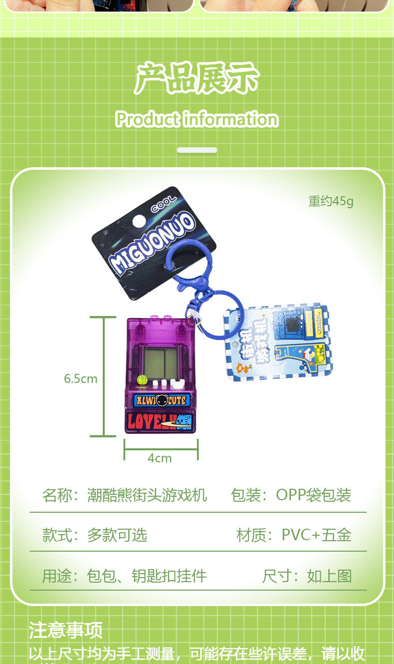 오리지널 조수 쿨 베어 스트리트 게임기 키 체인 창조적 인 학생 어린이 장난감 만화 책가방 펜던트 작은 선물스토어 가기