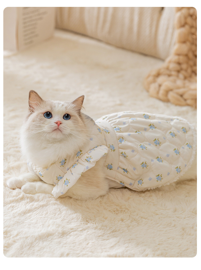 일본과 한국 공주 스타일 고양이 옷 작은 신선한 웨이브 퀼트 면 커플 옷 면 원피스 고양이 고양이 고양이 개 옷스토어 가기