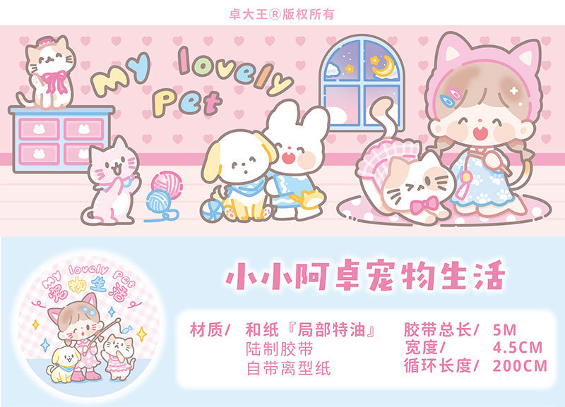 킹 Zhuo [10 월 새로운] Azuo는 Mengeng 동물 애완 동물 생활 만화 핸드북 테이프를 오늘 착용