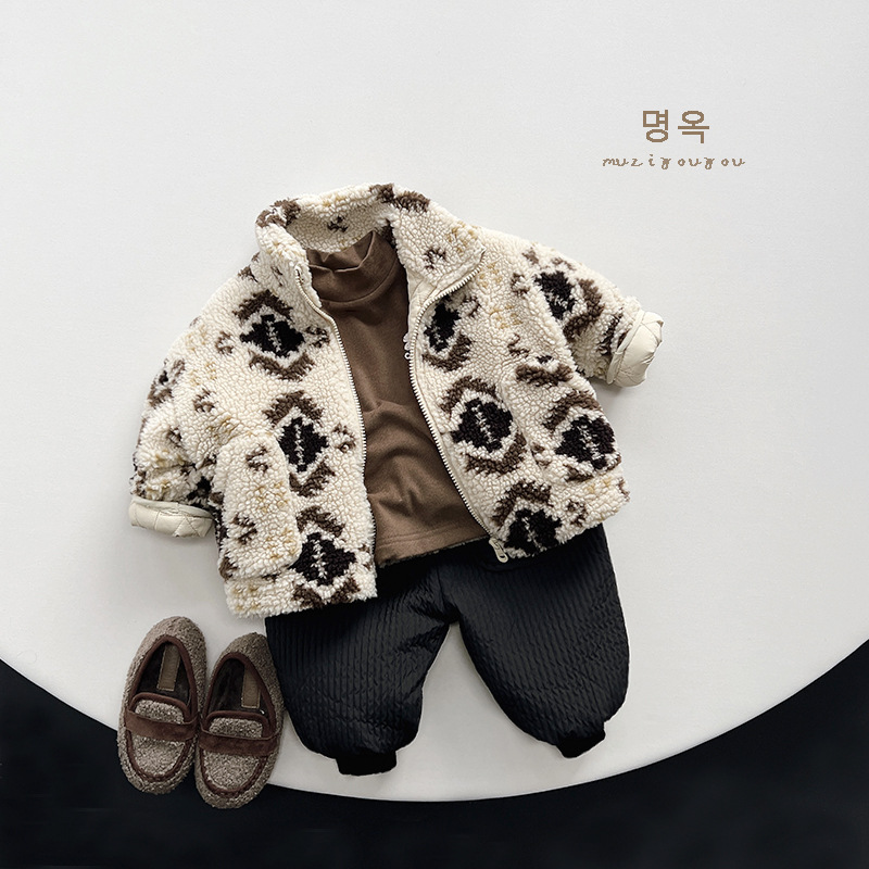 한국 스타일 코튼 자켓 소년과 소녀를위한 2025 겨울 새 스타일 플러스 코튼 플러시 따뜻한 코튼 코트 아기 유행 아동 의류스토어 가기