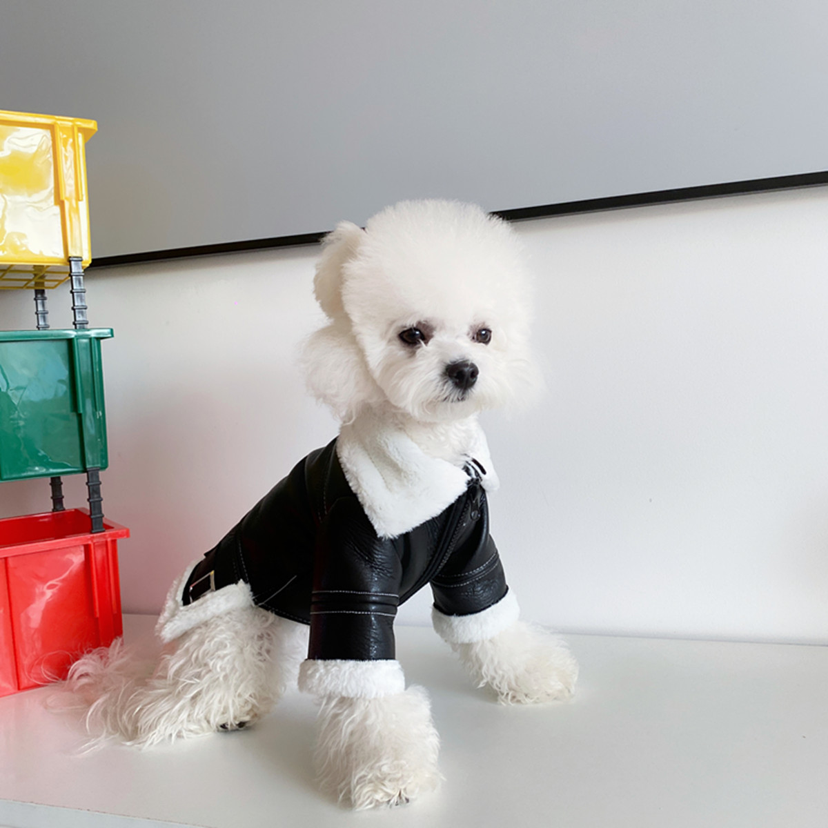 개 옷 겨울 옷 두꺼운 유행 브랜드 모피 원피스 오토바이 재킷 작은 개 테디 보미 슈나우저 고양이스토어 가기