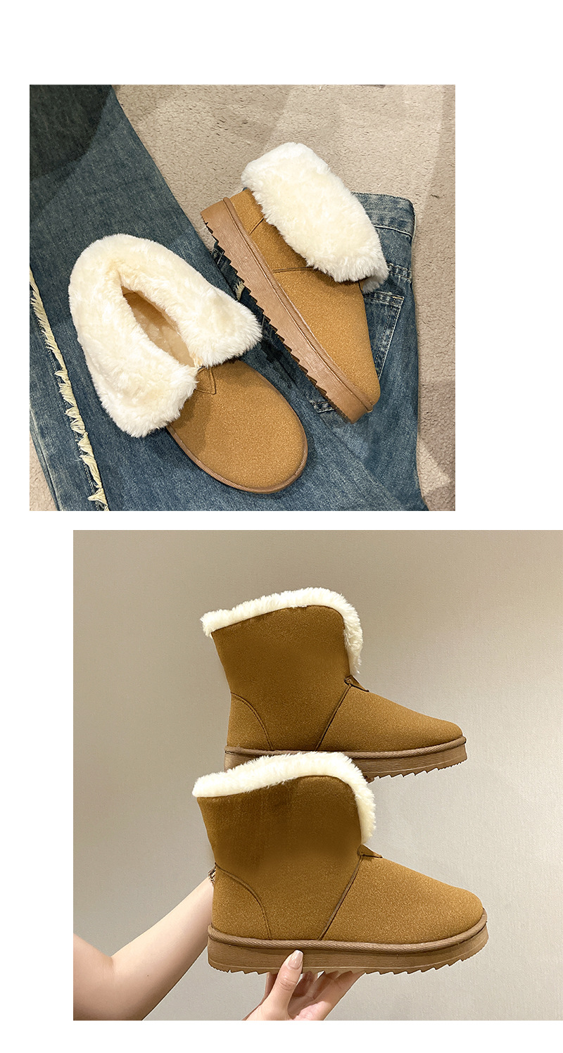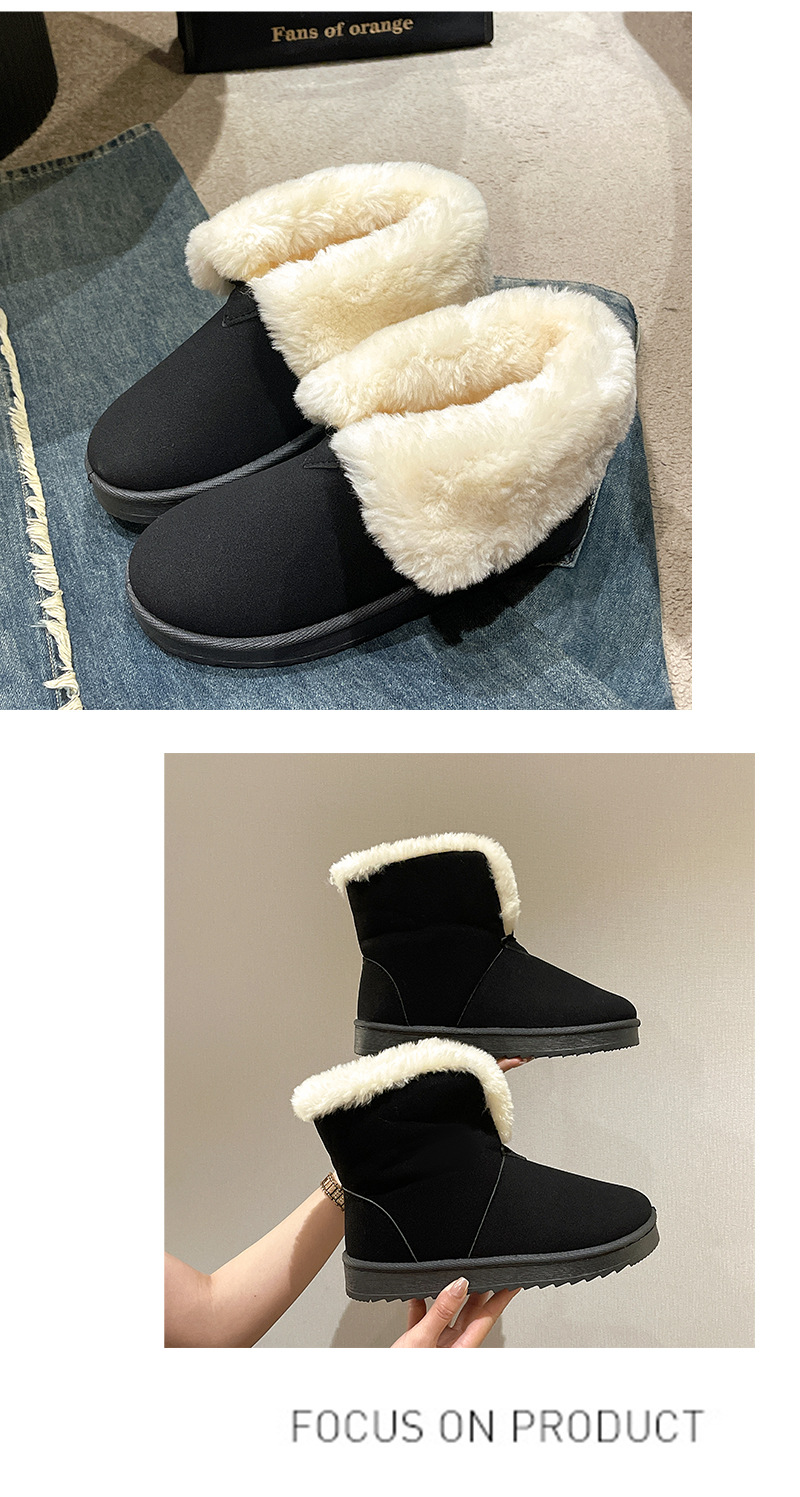 따뜻한 노란 눈 부츠 면 신발 여자의 2023 겨울 새로운 기모 두꺼운 따뜻한 눈 면 부츠 여자의 신발