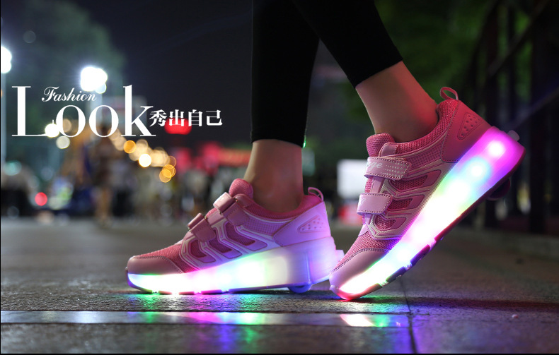 봄과 가을 새로운 통기성 메쉬 Heetok 신발 여아 2 륜 스케이트 충전식 반짝이 신발 남아 대형 신발스토어 가기