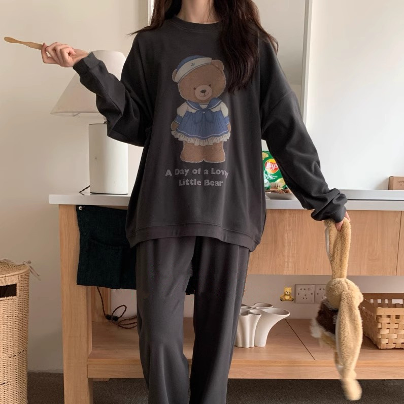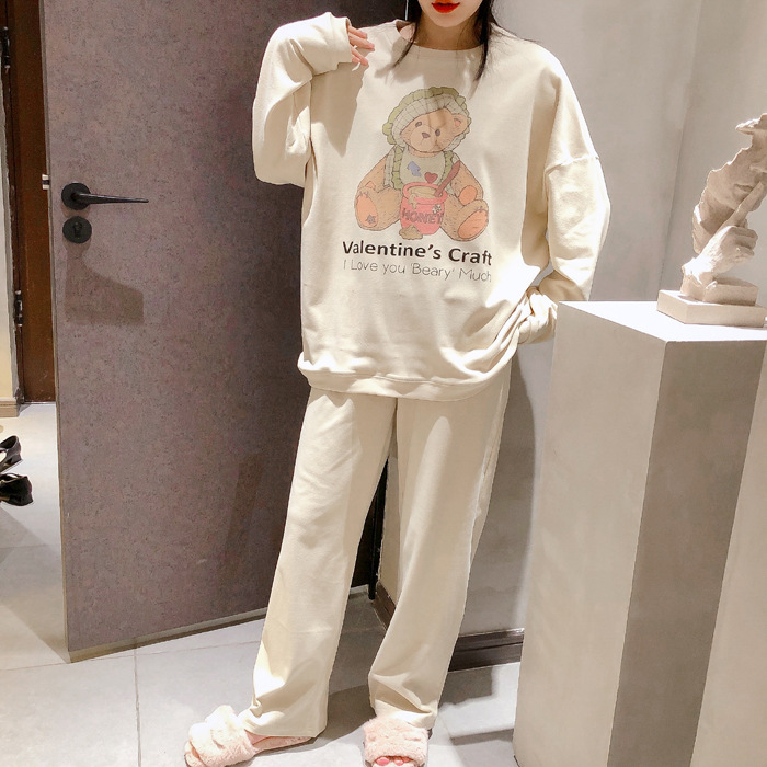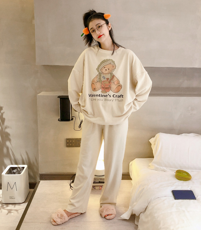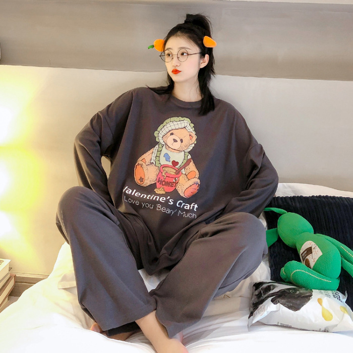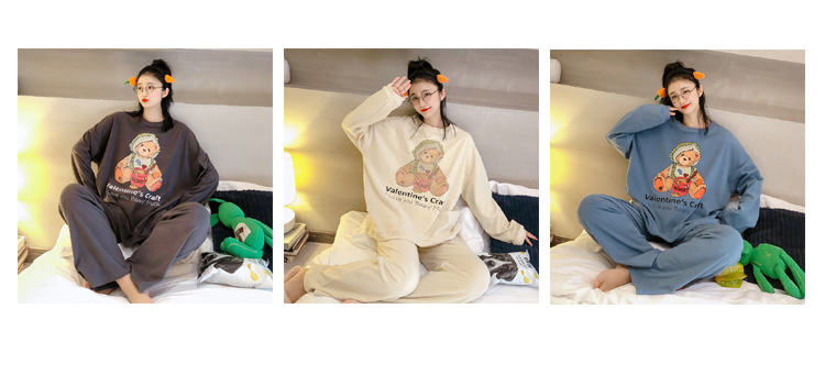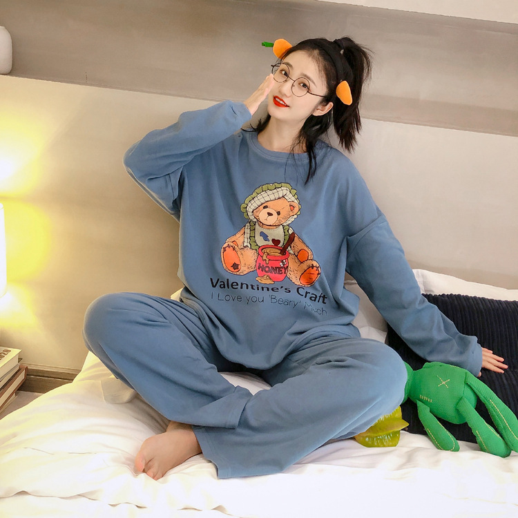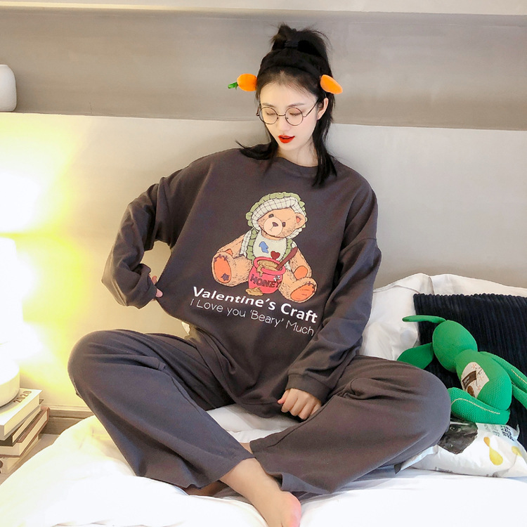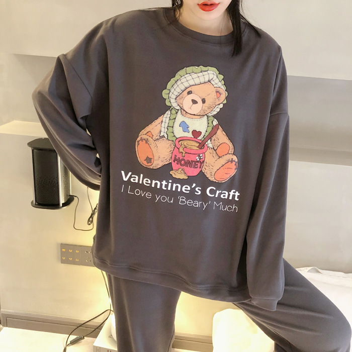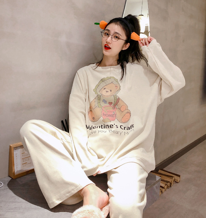 공장 도매 가을과 겨울 새로운 독일 벨벳 잠옷 여자의 긴 소매 스웨터 세트 만화 허니팟 곰 달콤한 가정 옷스토어 가기