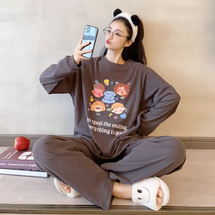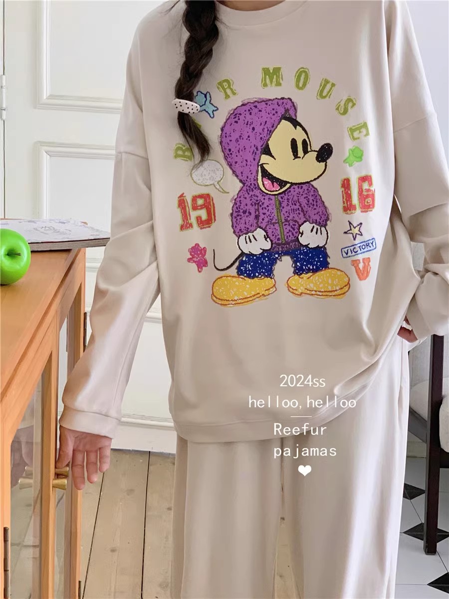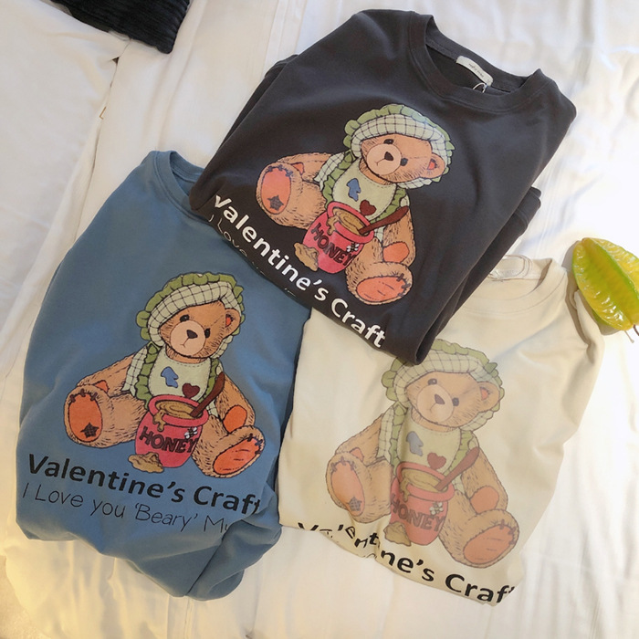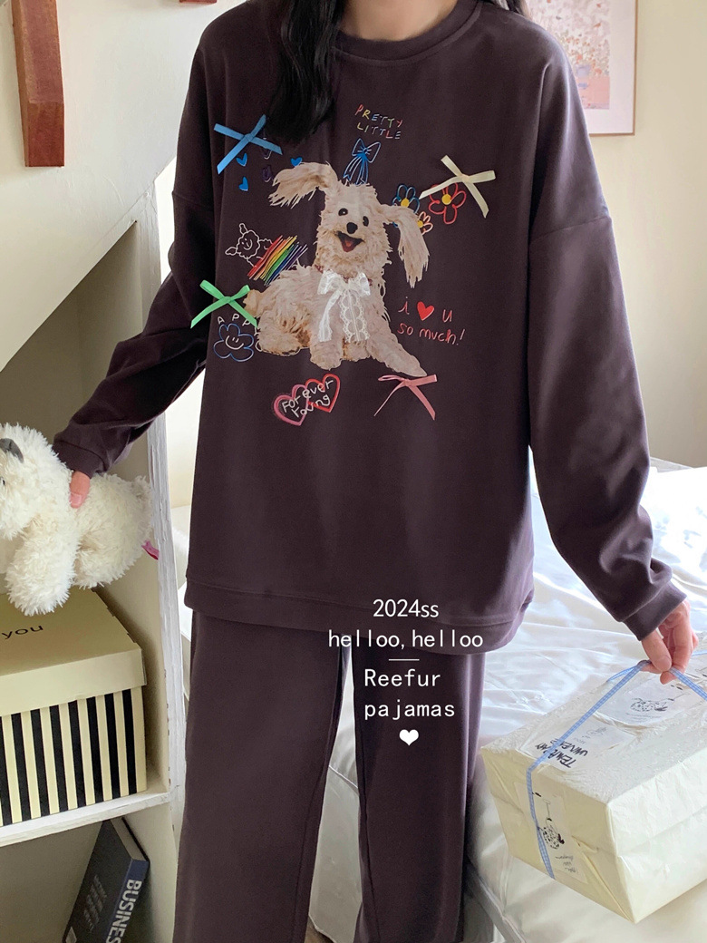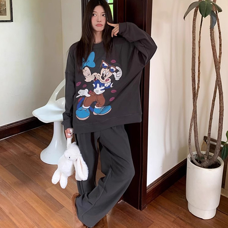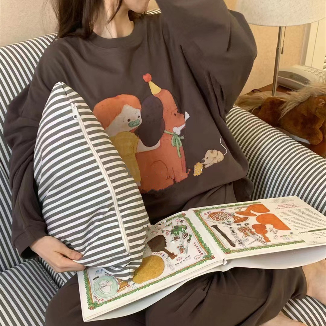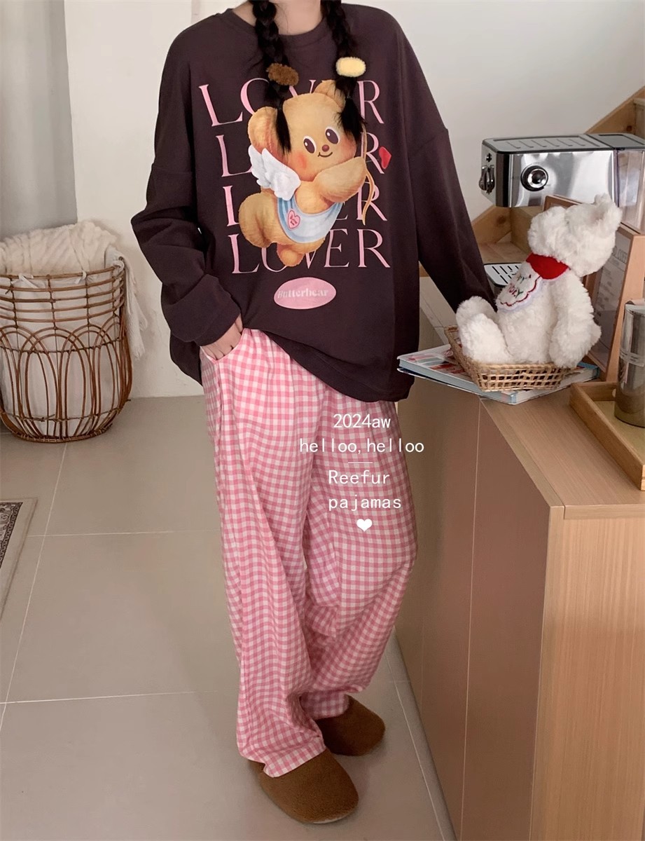 공장 도매 가을과 겨울 새로운 독일 벨벳 잠옷 여자의 긴 소매 스웨터 세트 만화 허니팟 곰 달콤한 가정 옷스토어 가기