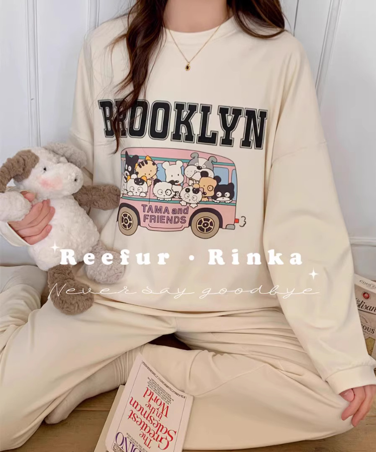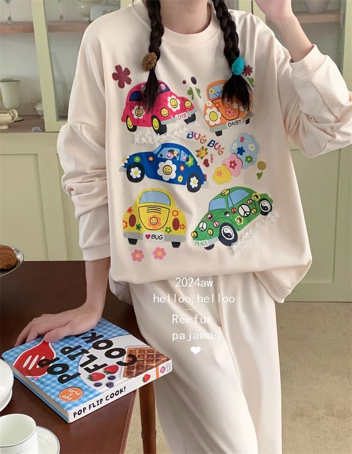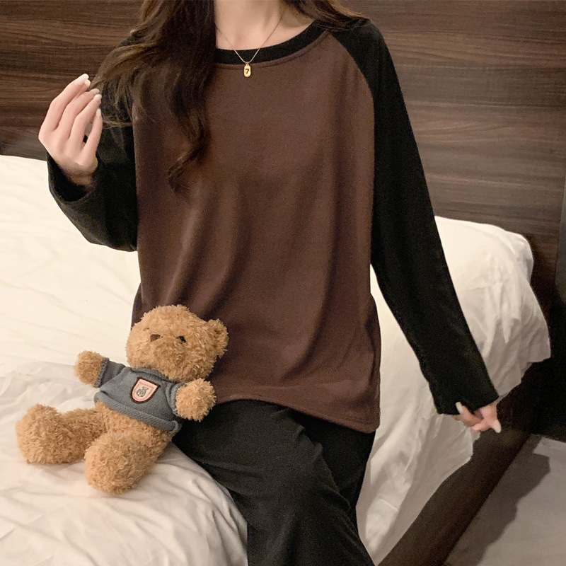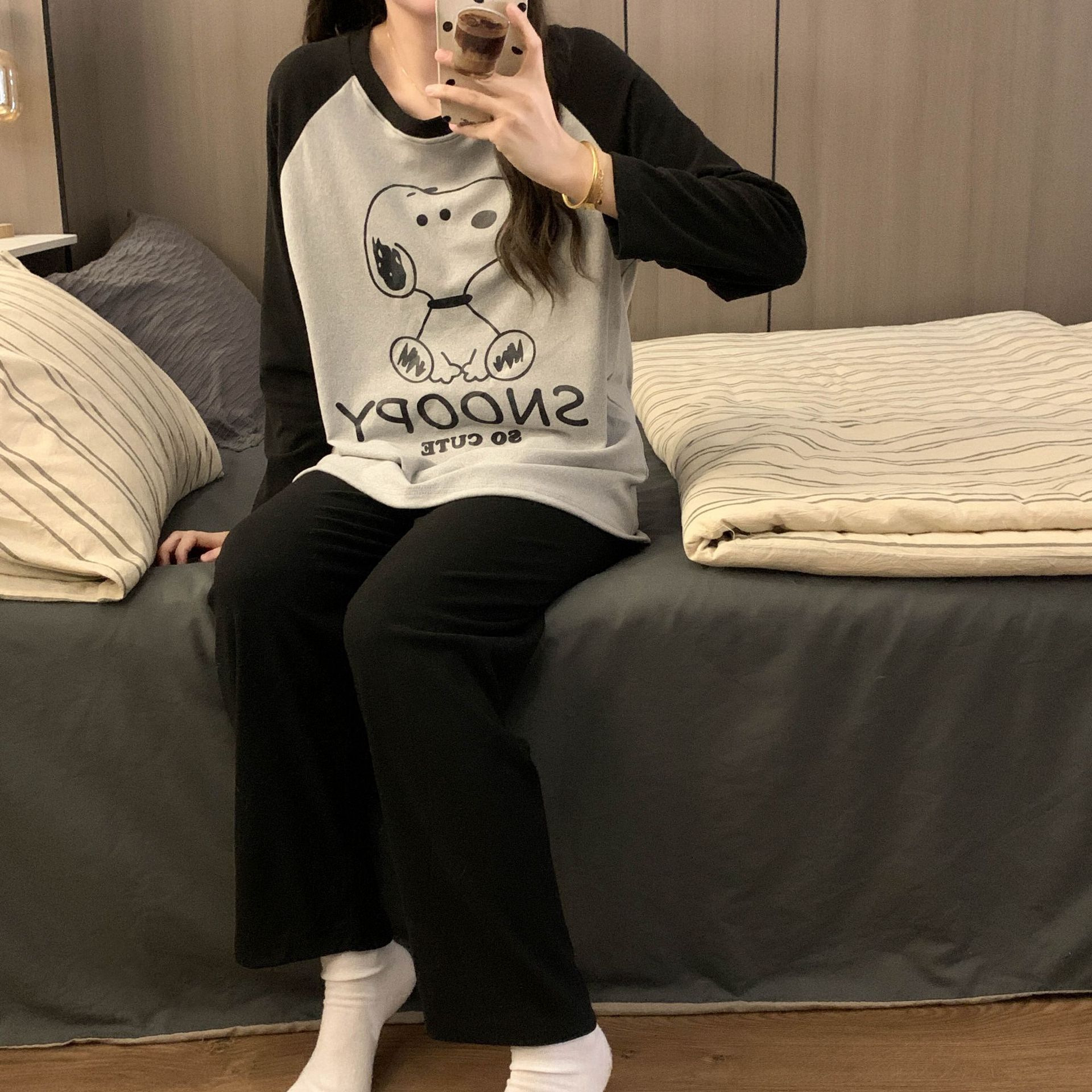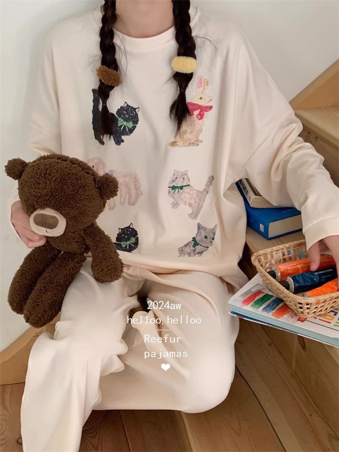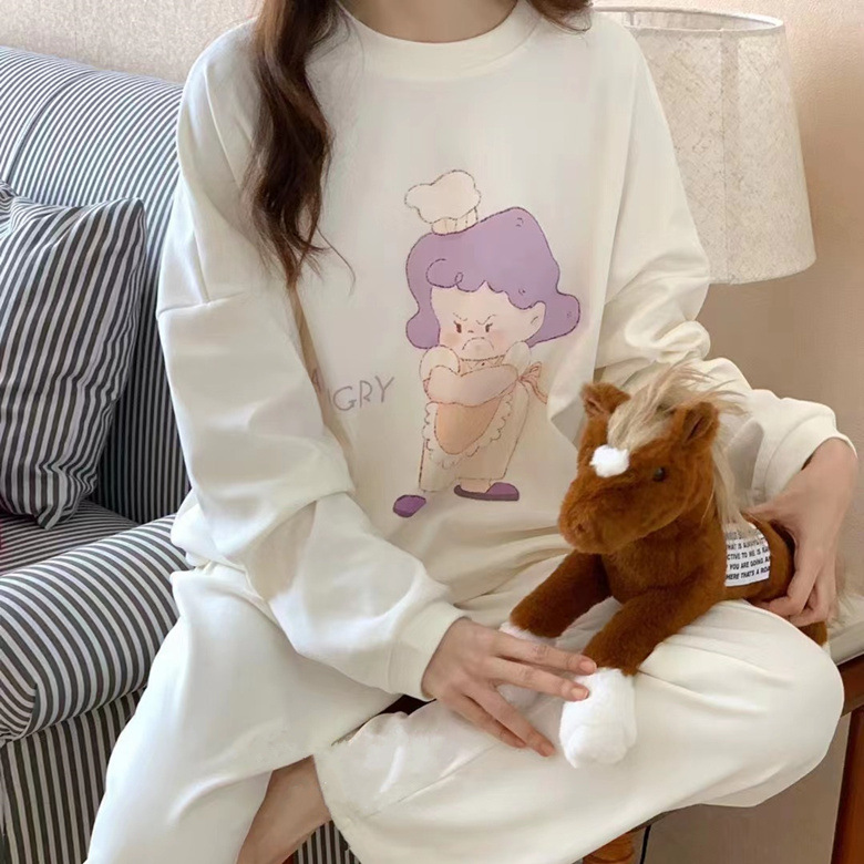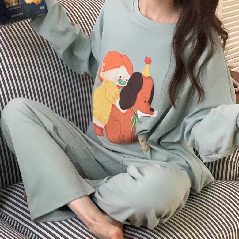 공장 도매 가을과 겨울 새로운 독일 벨벳 잠옷 여자의 긴 소매 스웨터 세트 만화 허니팟 곰 달콤한 가정 옷스토어 가기