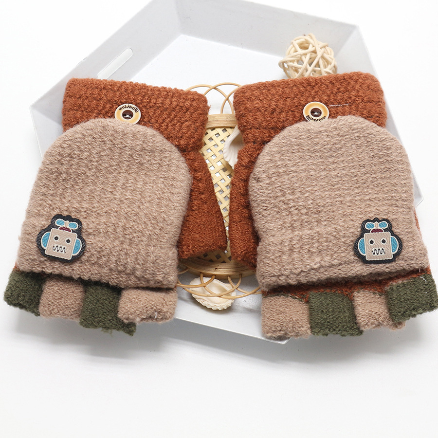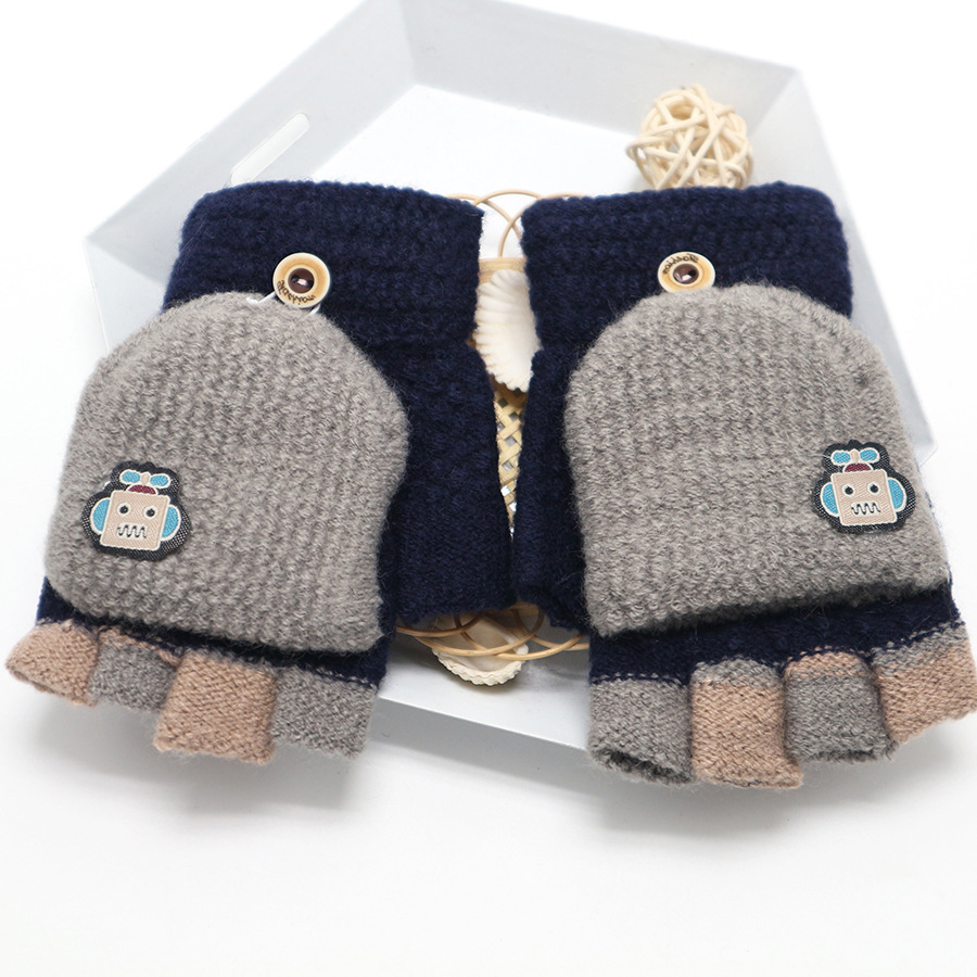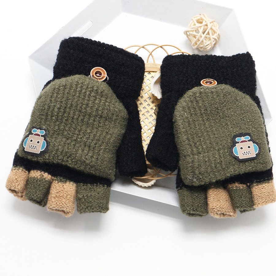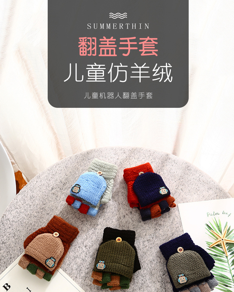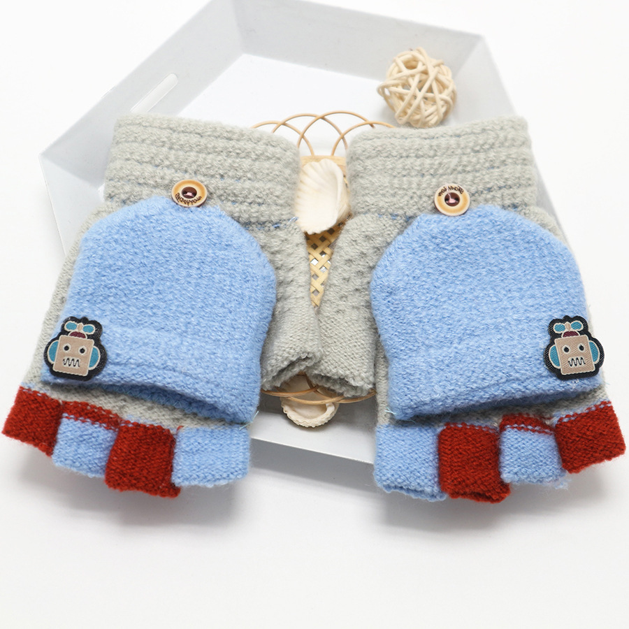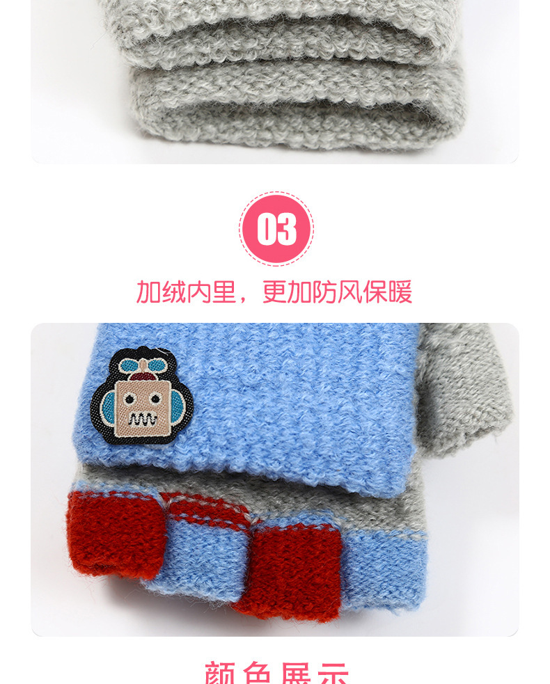 남학생 4-12 세 반 손가락 따뜻한 장갑 겨울 학생 두꺼운 만화 니트 플립 로봇 장갑 쓰기