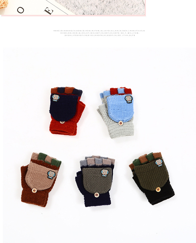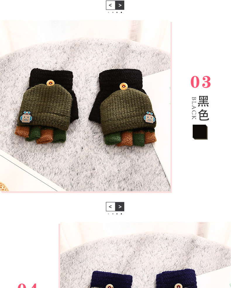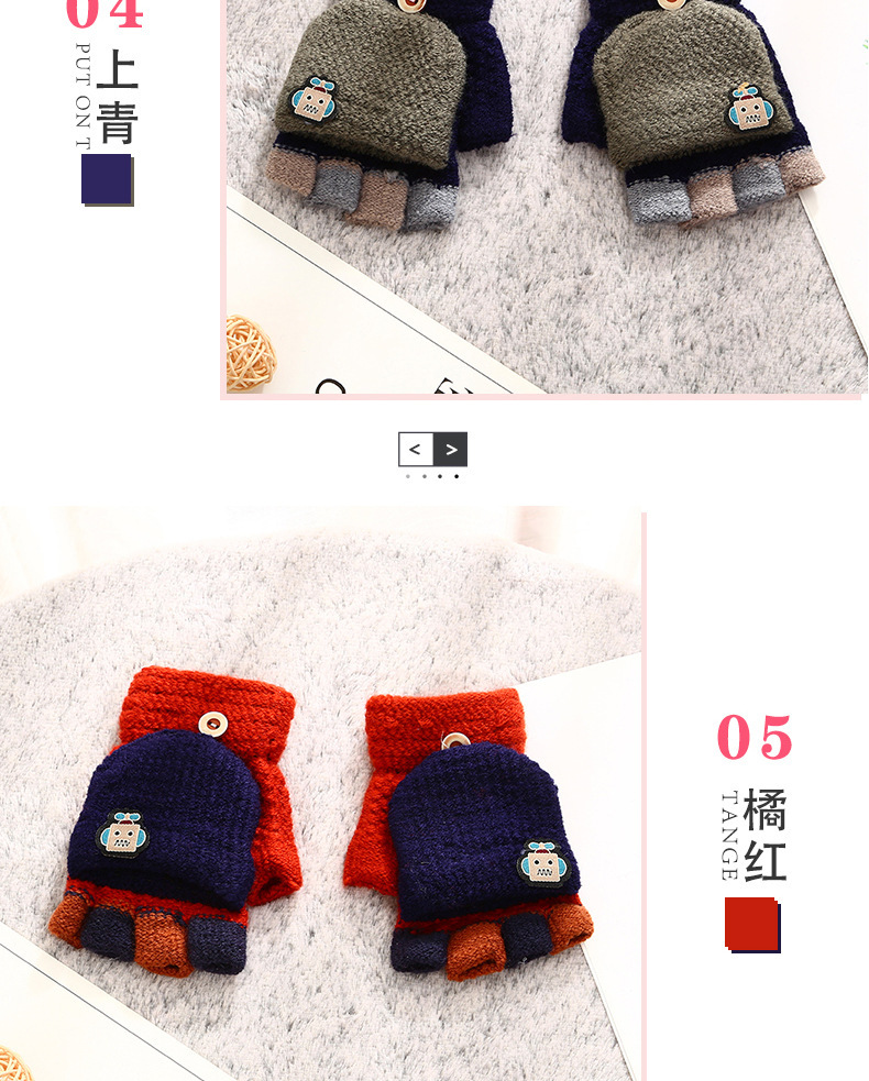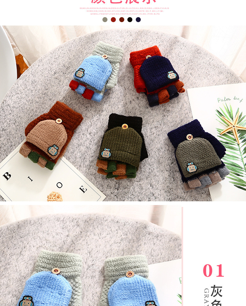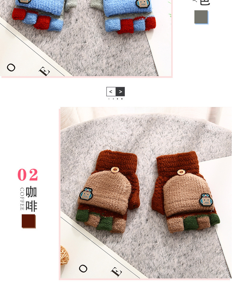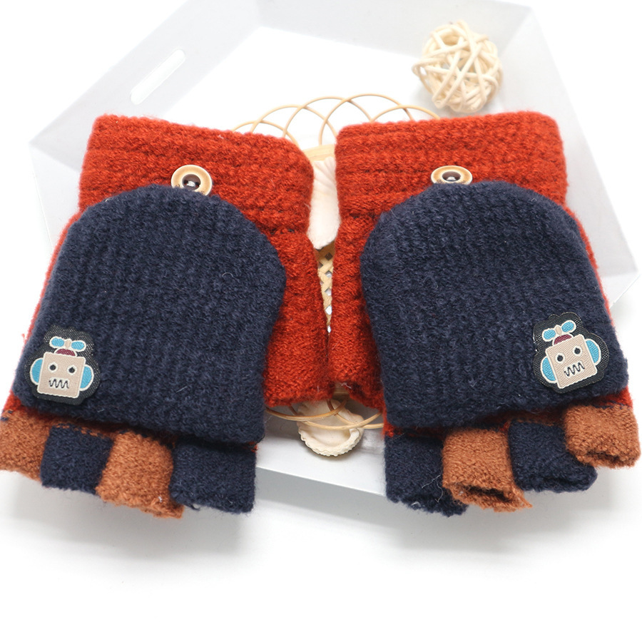 남학생 4-12 세 반 손가락 따뜻한 장갑 겨울 학생 두꺼운 만화 니트 플립 로봇 장갑 쓰기