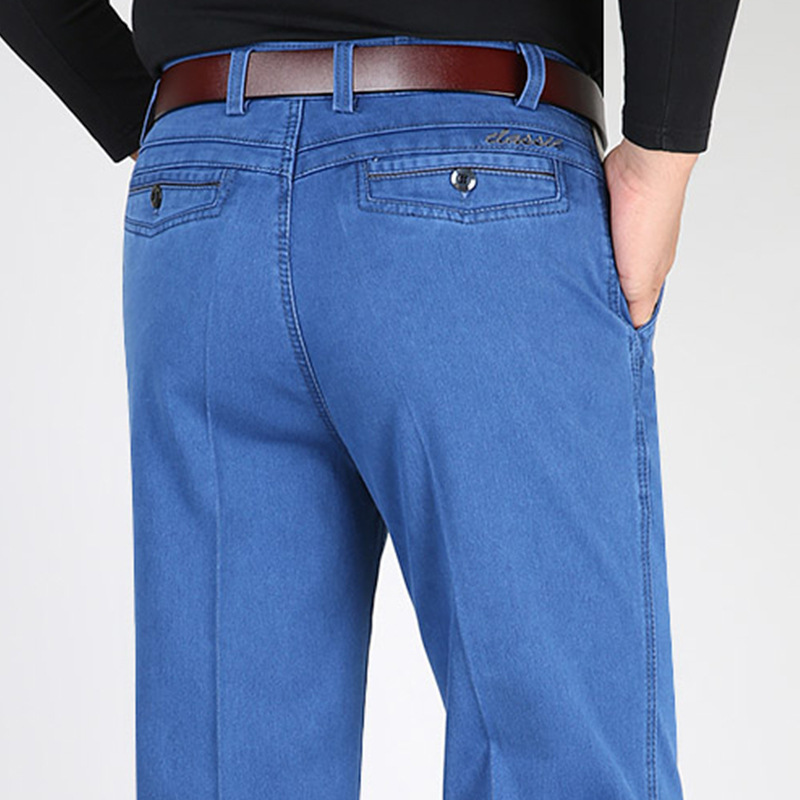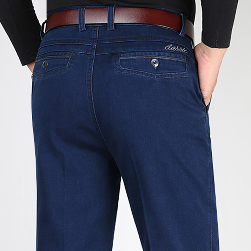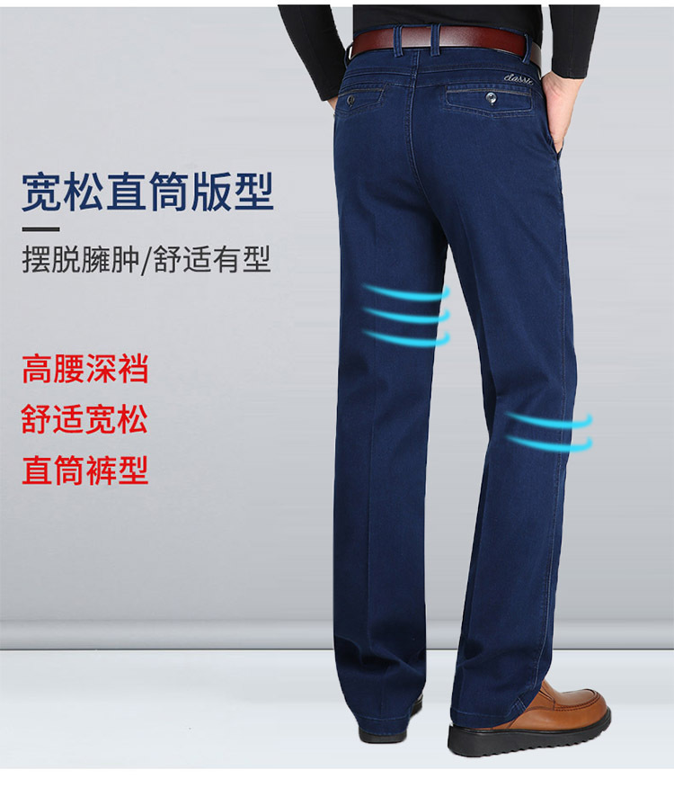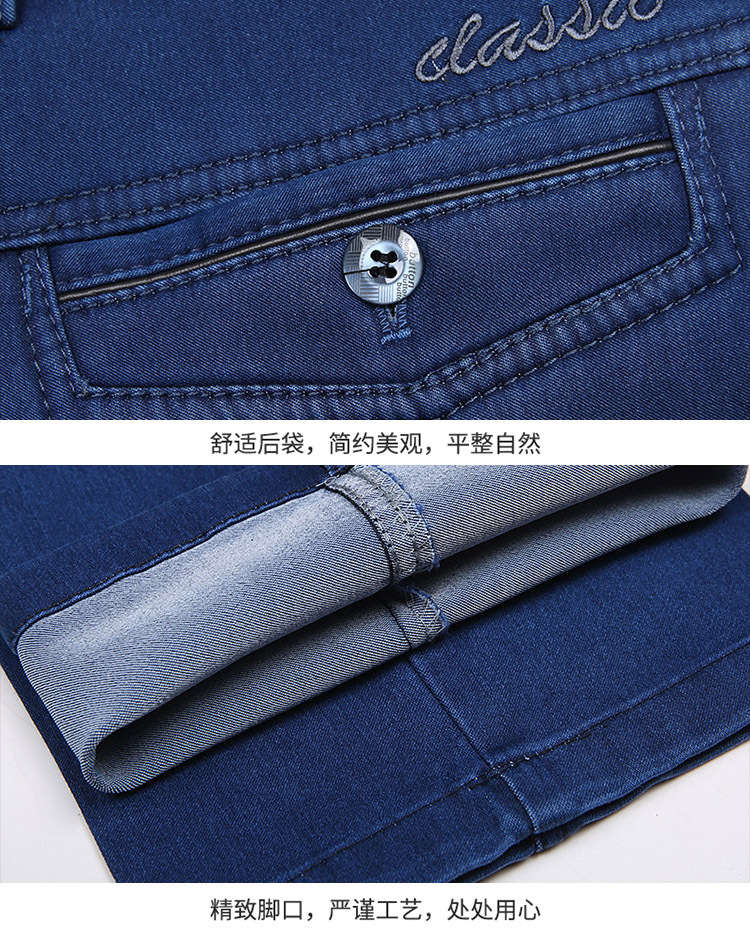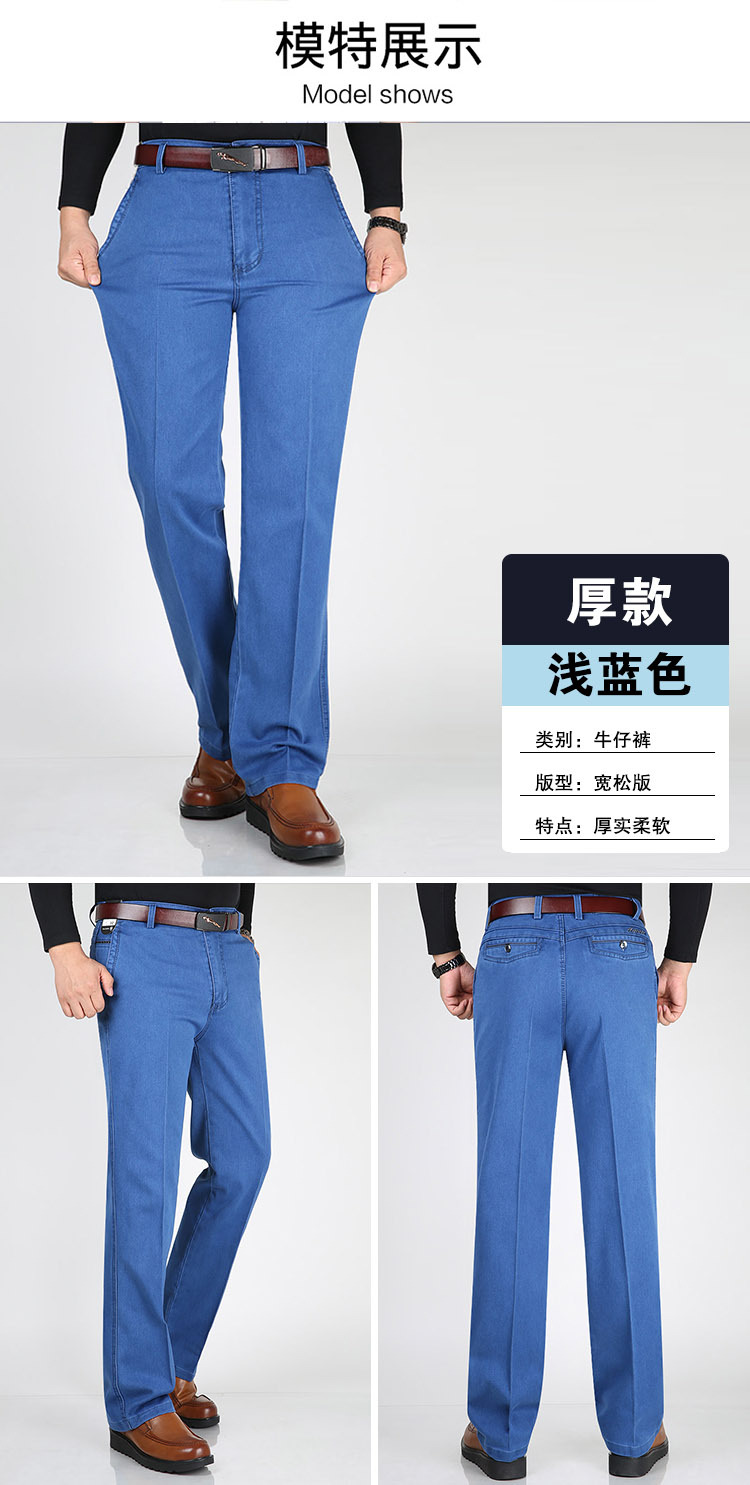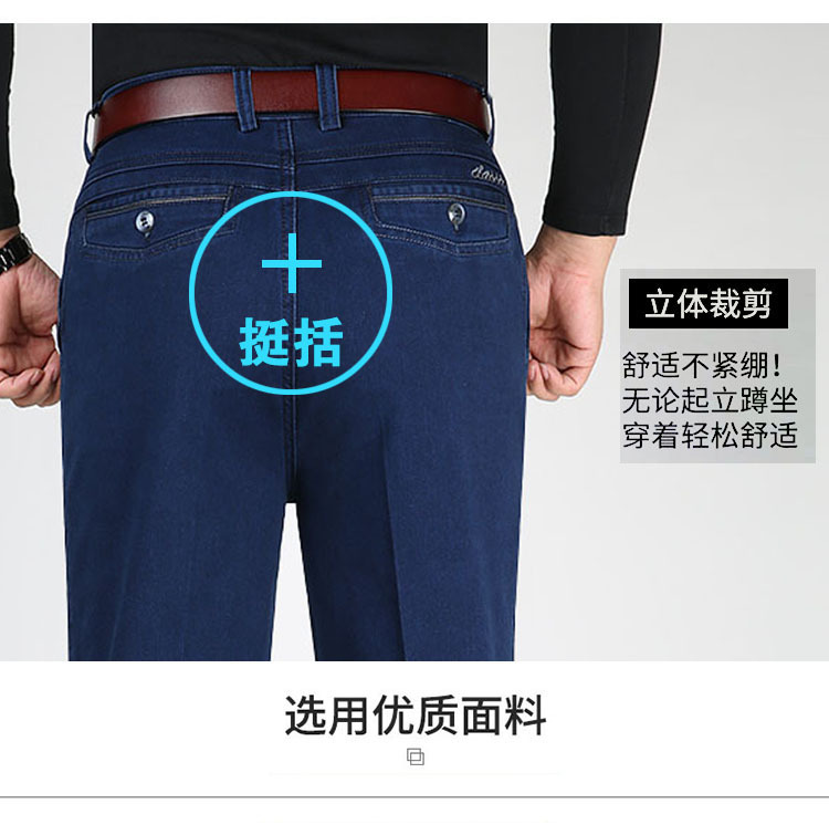 Perki 캥거루 가을과 겨울 두꺼운 중년 남성 청바지 비즈니스 느슨한 스트레치 면 데님 긴 바지스토어 가기