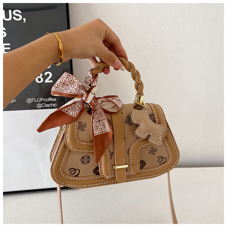 • 다크 브라운 소재 가방 [실크 스카프 펜던트 보내기]