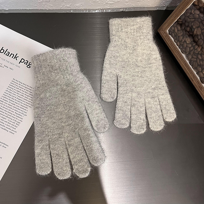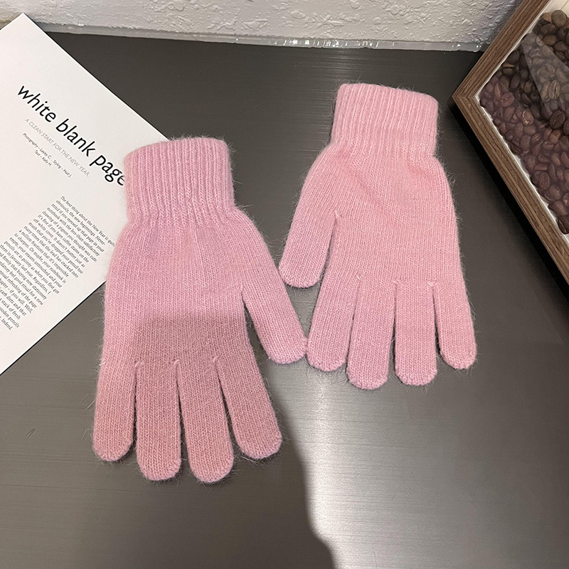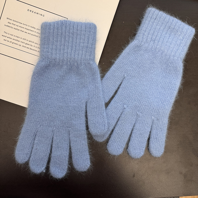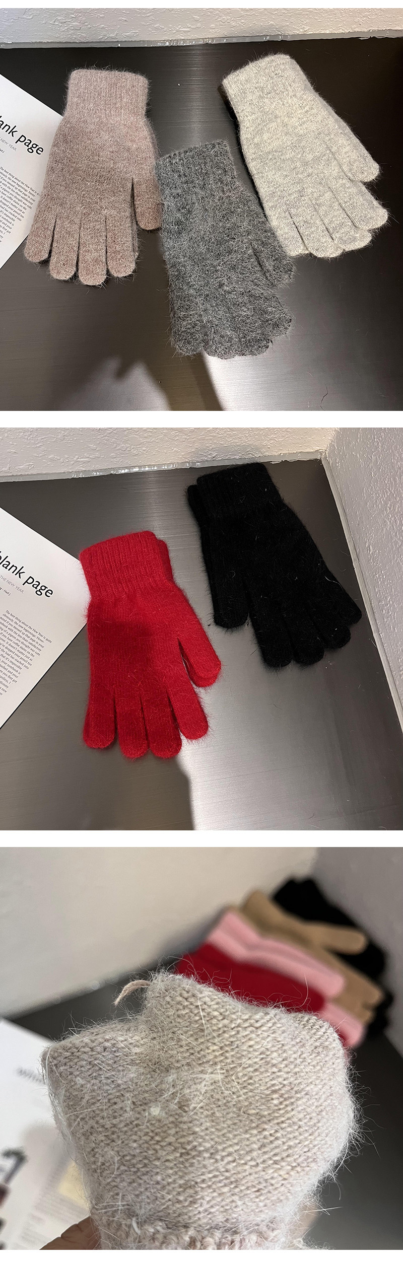 단색 승마 장갑 학생 귀여운 모든 경기 방한 따뜻한 스플릿 핑거 플러시 니트 토끼 헤어 블렌디드 여성용 겨울