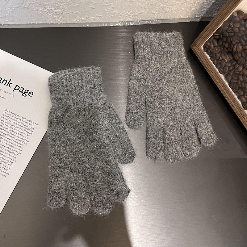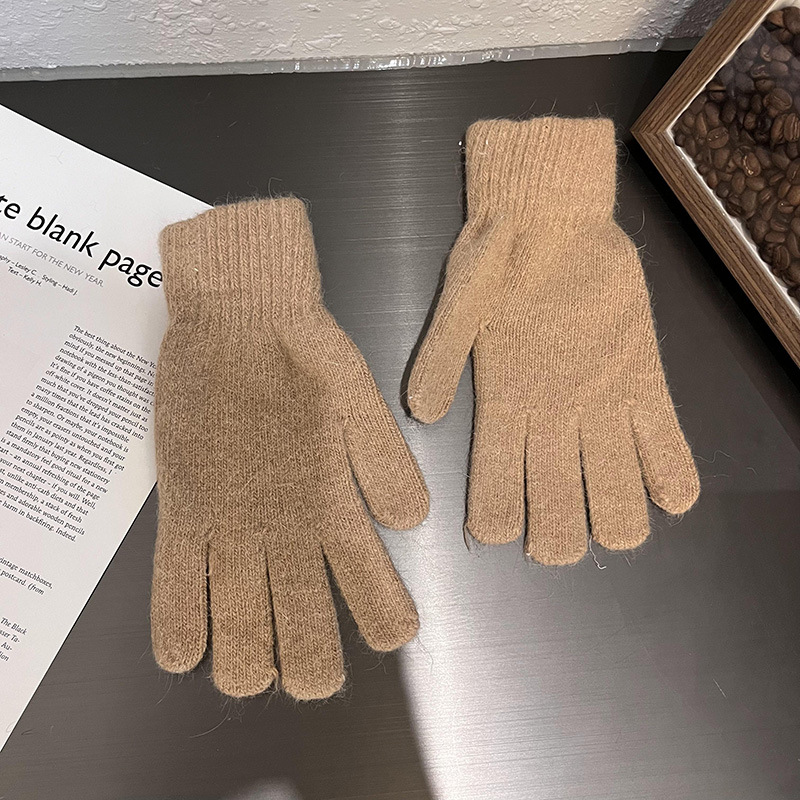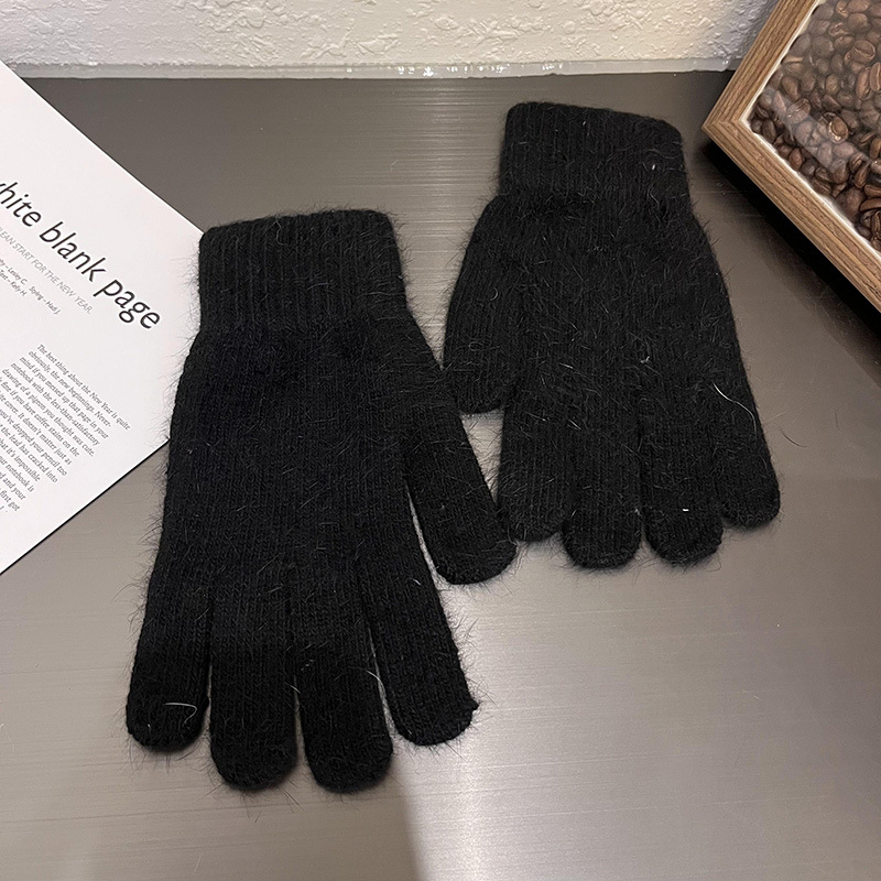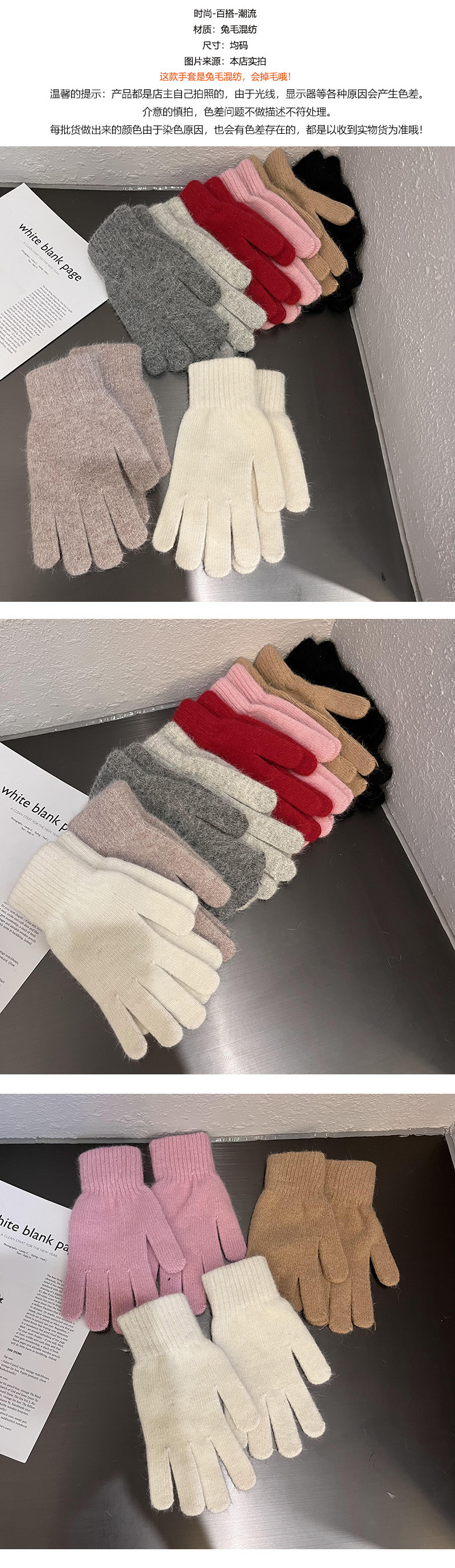 단색 승마 장갑 학생 귀여운 모든 경기 방한 따뜻한 스플릿 핑거 플러시 니트 토끼 헤어 블렌디드 여성용 겨울