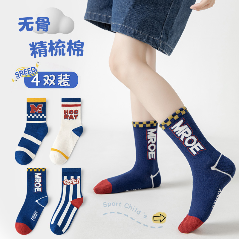 어린이 양말 봄과 가을 스포츠 양말 만화 귀여운 유행 뼈없는 면 양말 통기성