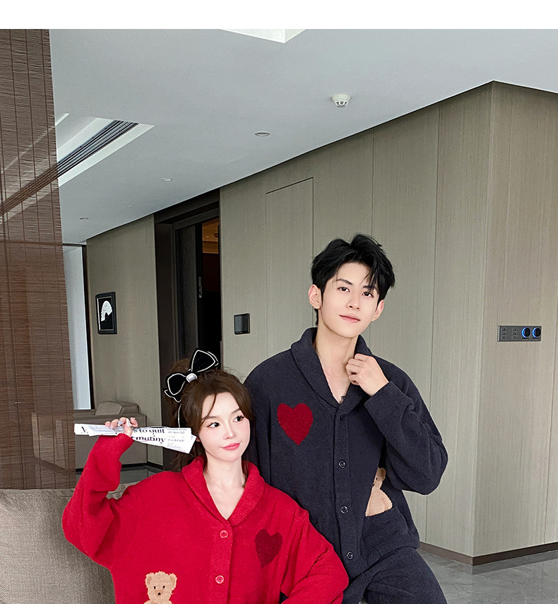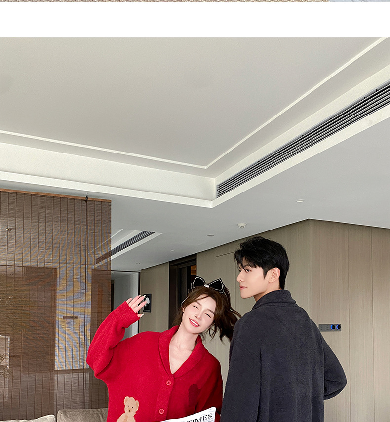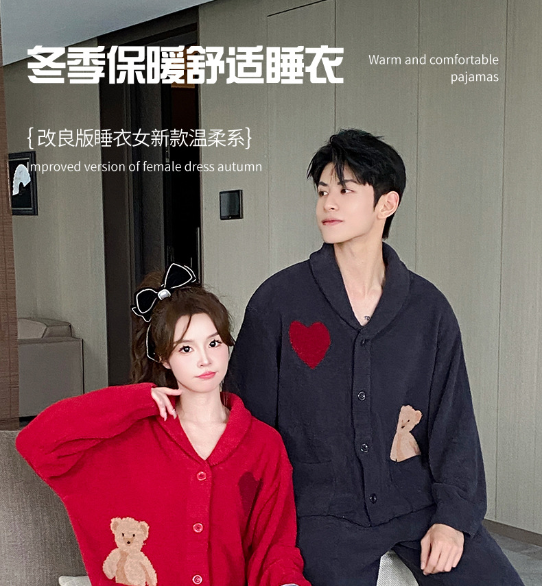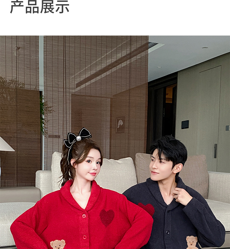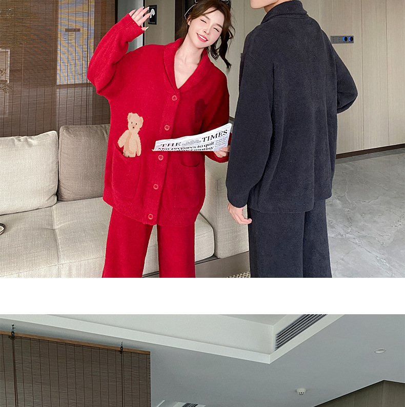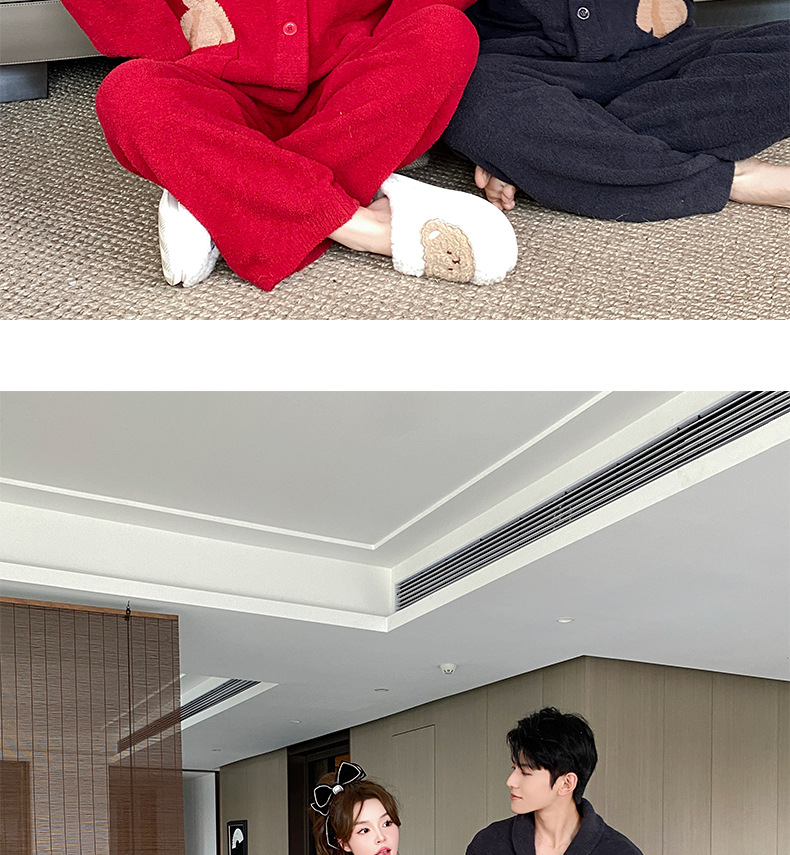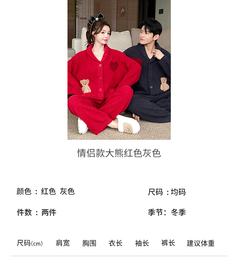 만화 곰 커플 잠옷 여자의 하프 벨벳 가을과 겨울 새로운 빨간 카디건 남자의 따뜻한 겉옷 세트스토어 가기