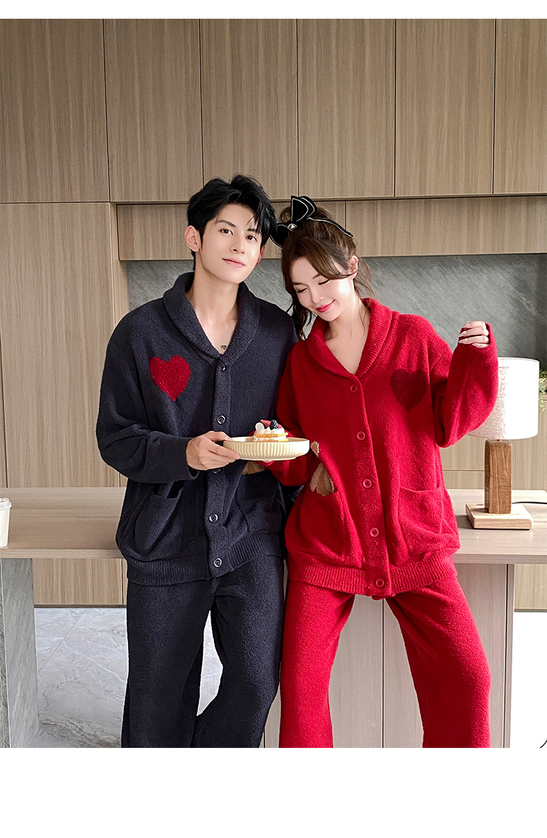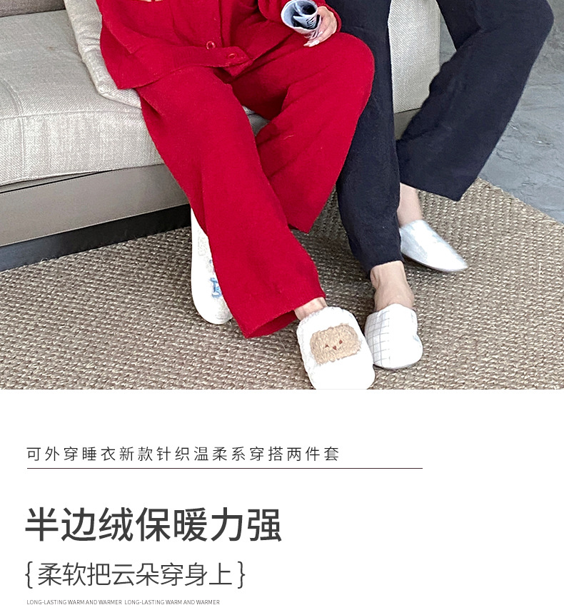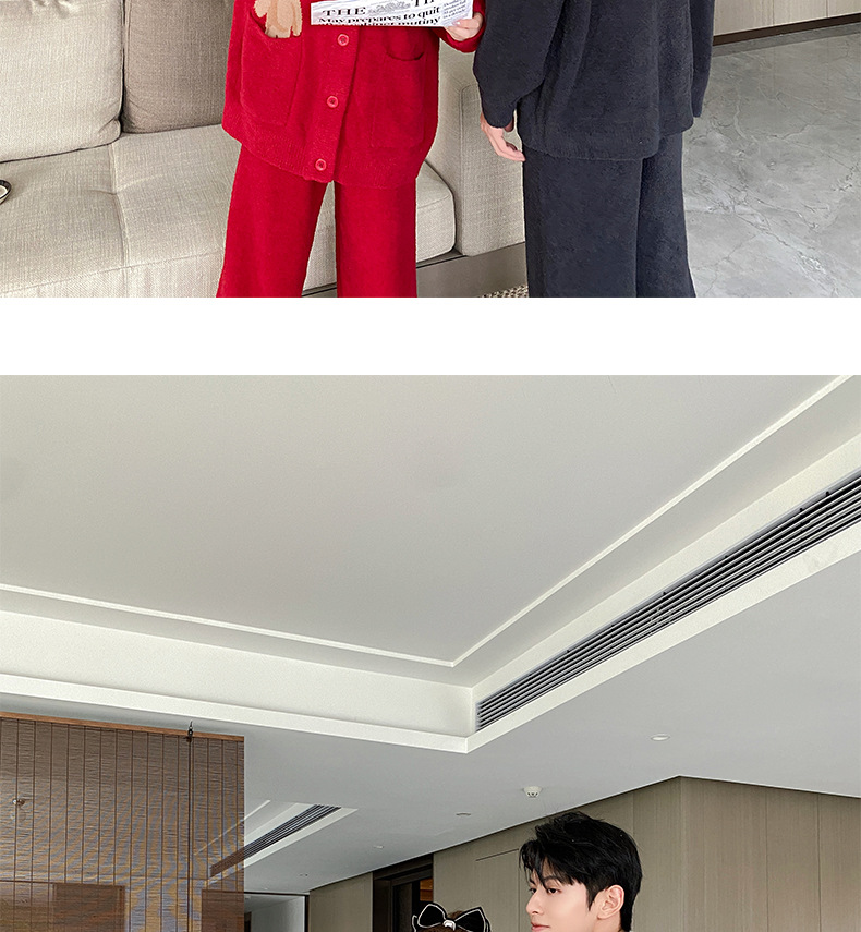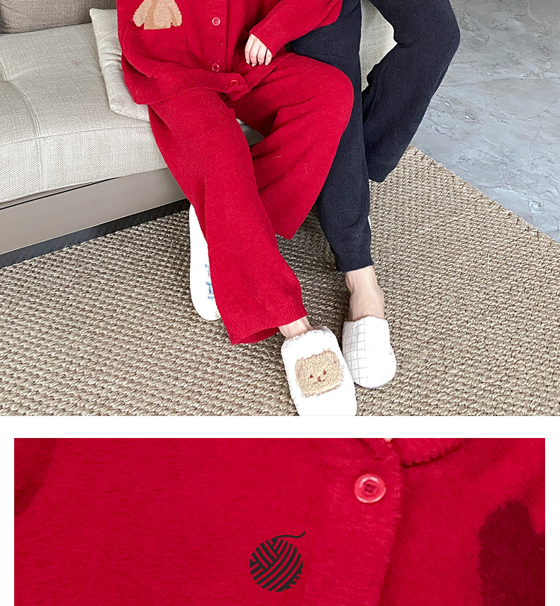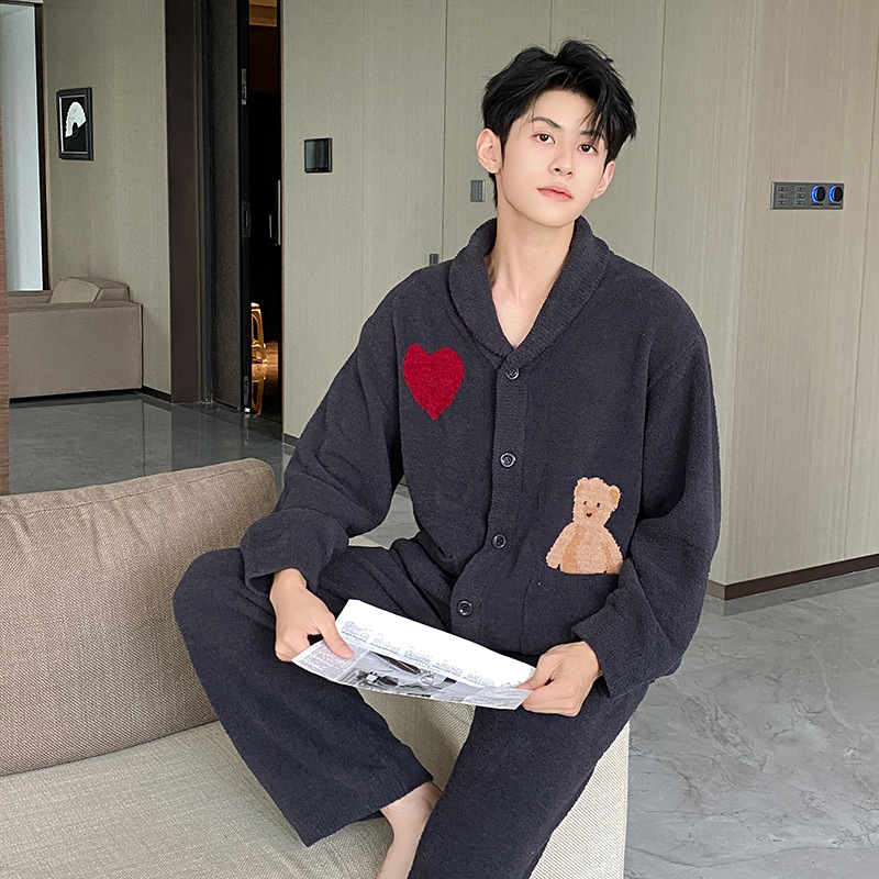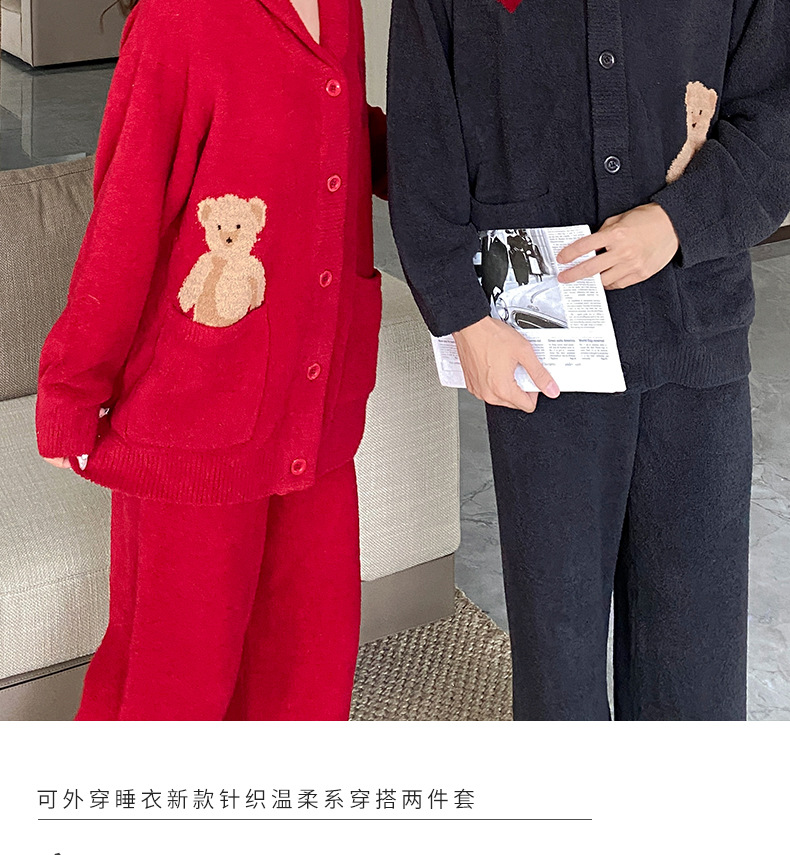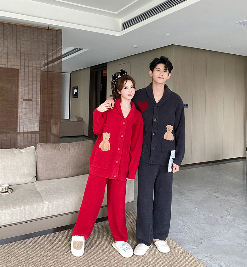 만화 곰 커플 잠옷 여자의 하프 벨벳 가을과 겨울 새로운 빨간 카디건 남자의 따뜻한 겉옷 세트스토어 가기