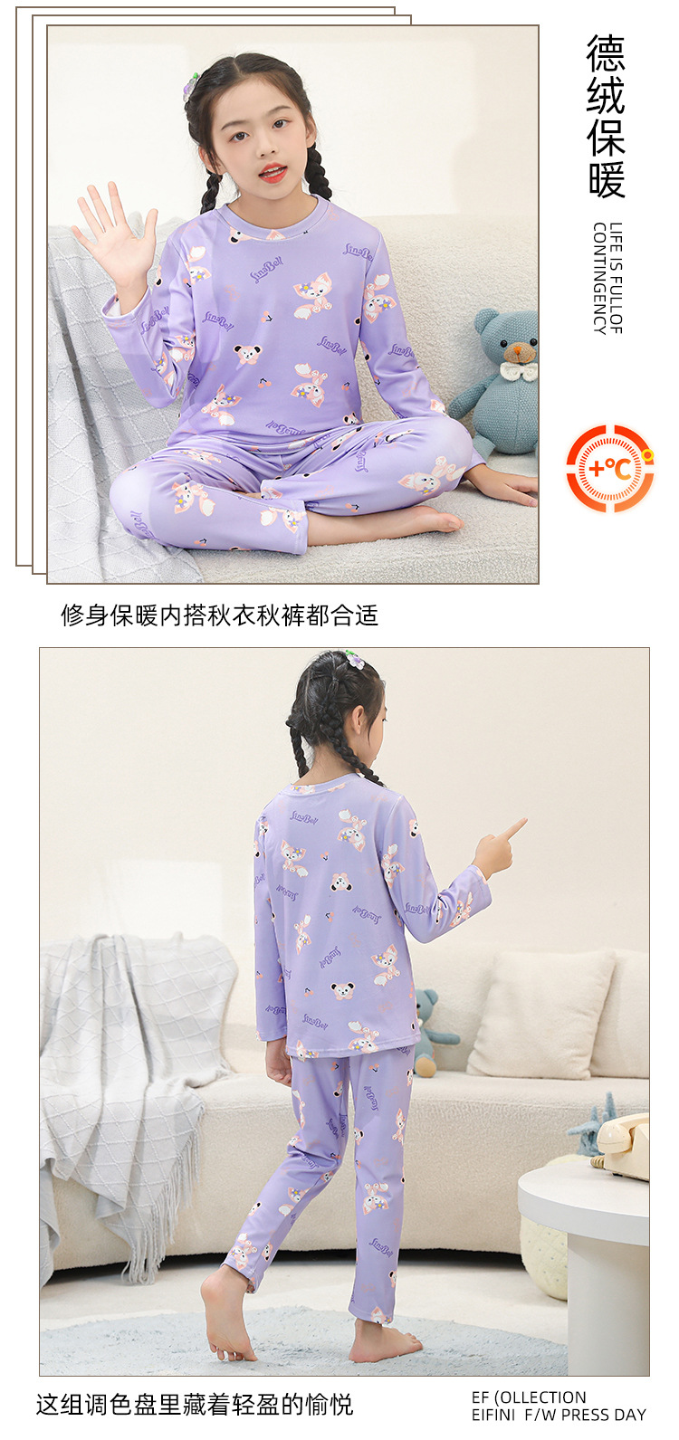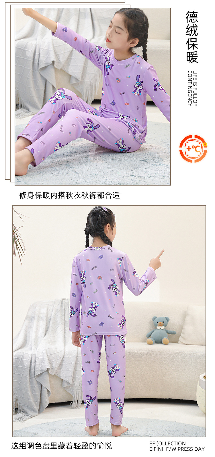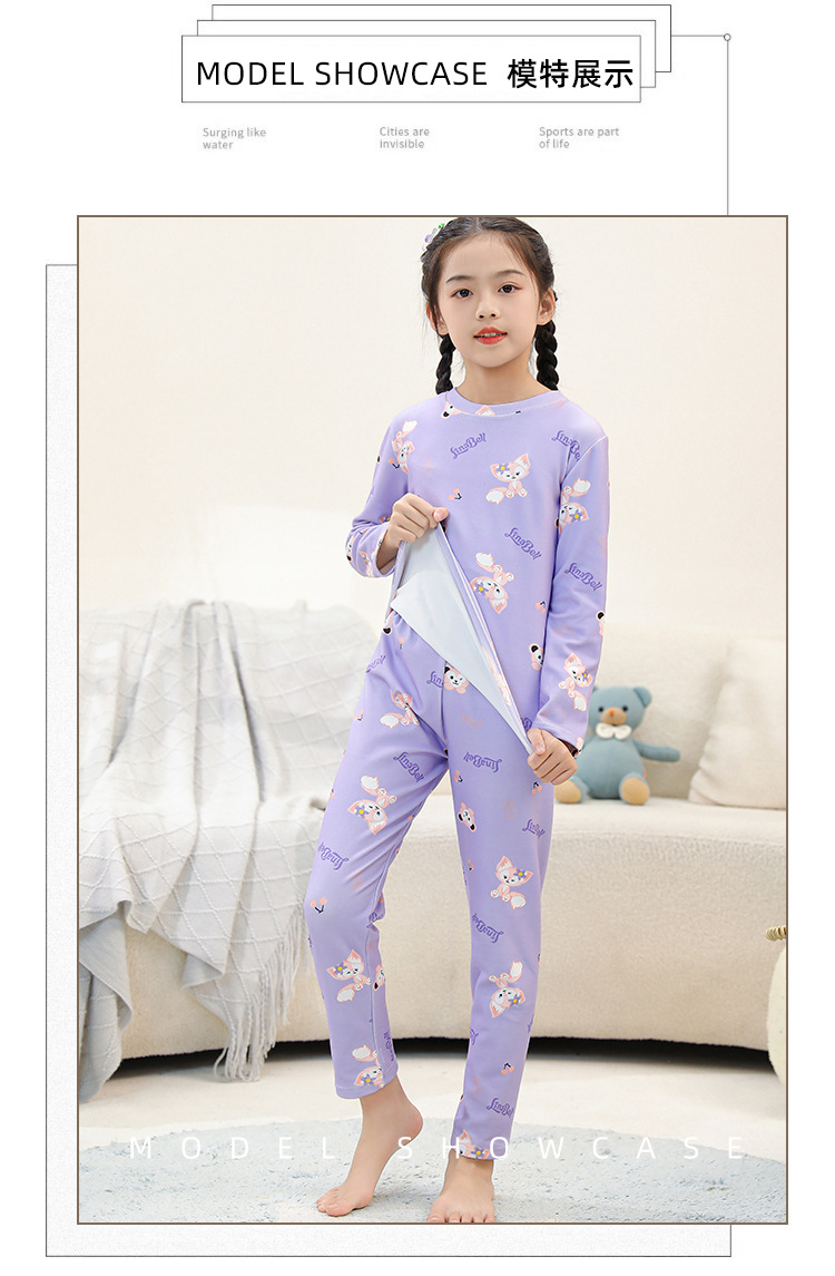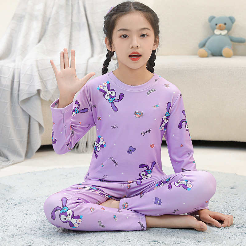 • SDT 따뜻한 라운드 넥 롱 세트-퍼플 스타 래빗