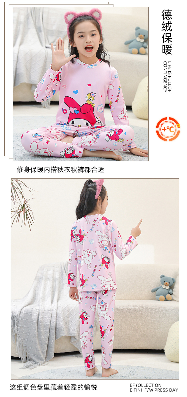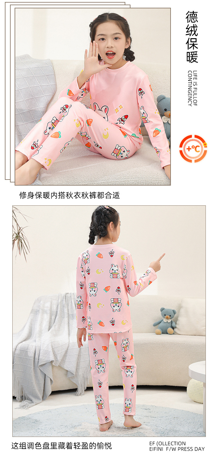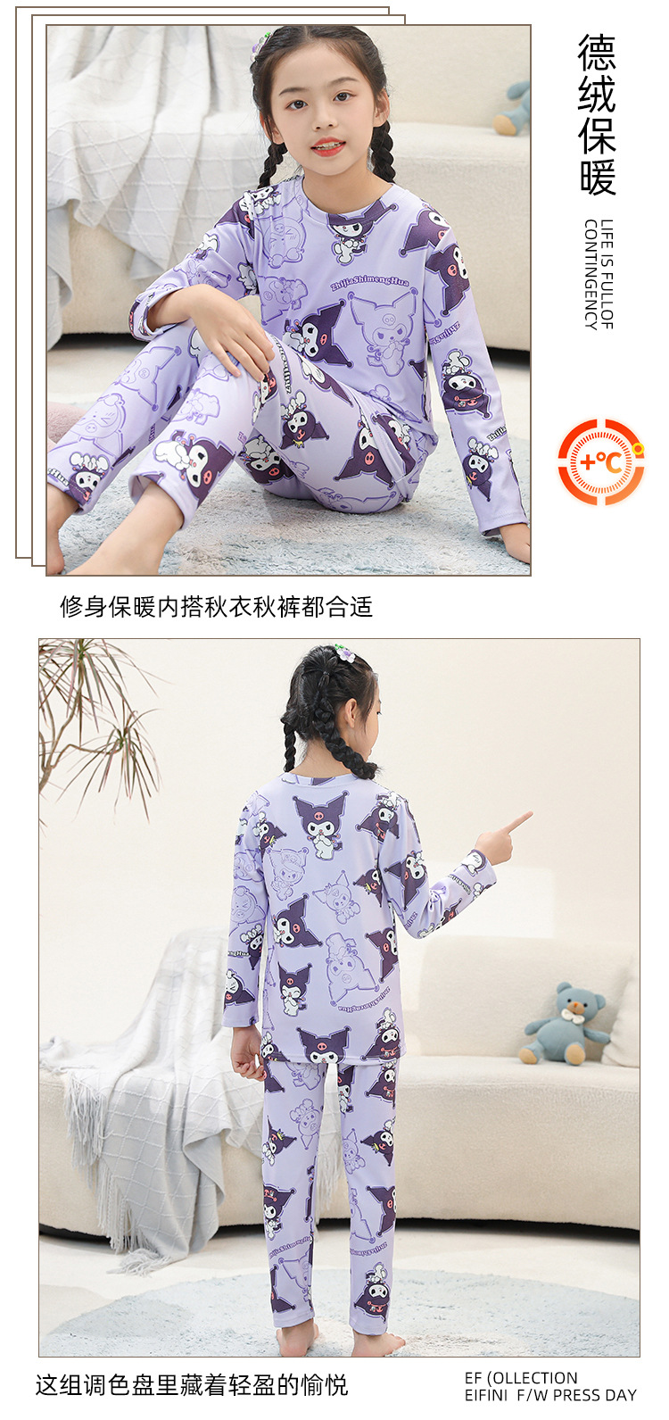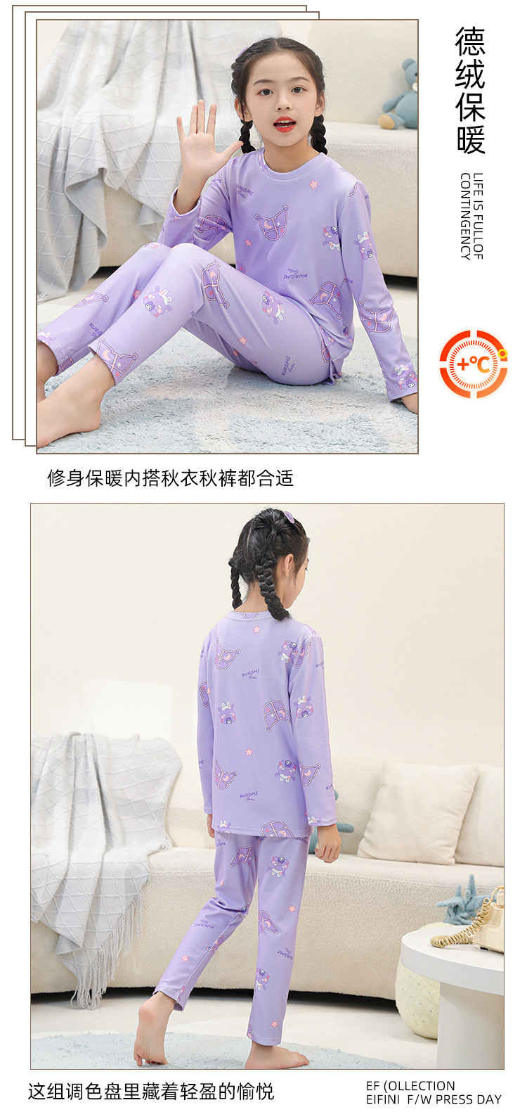 • SDT 따뜻한 라운드 넥 롱 세트-퍼플 스타 래빗