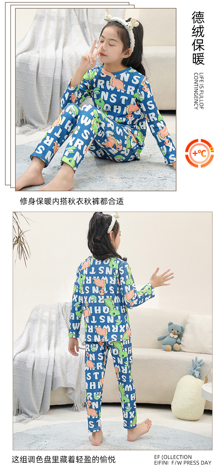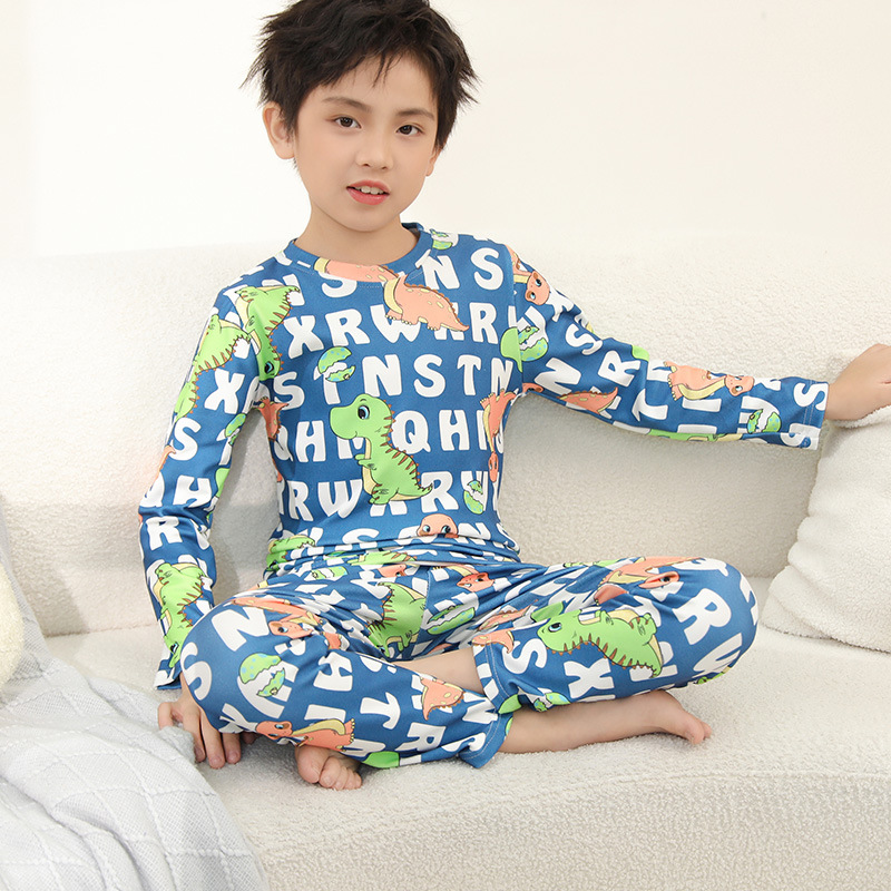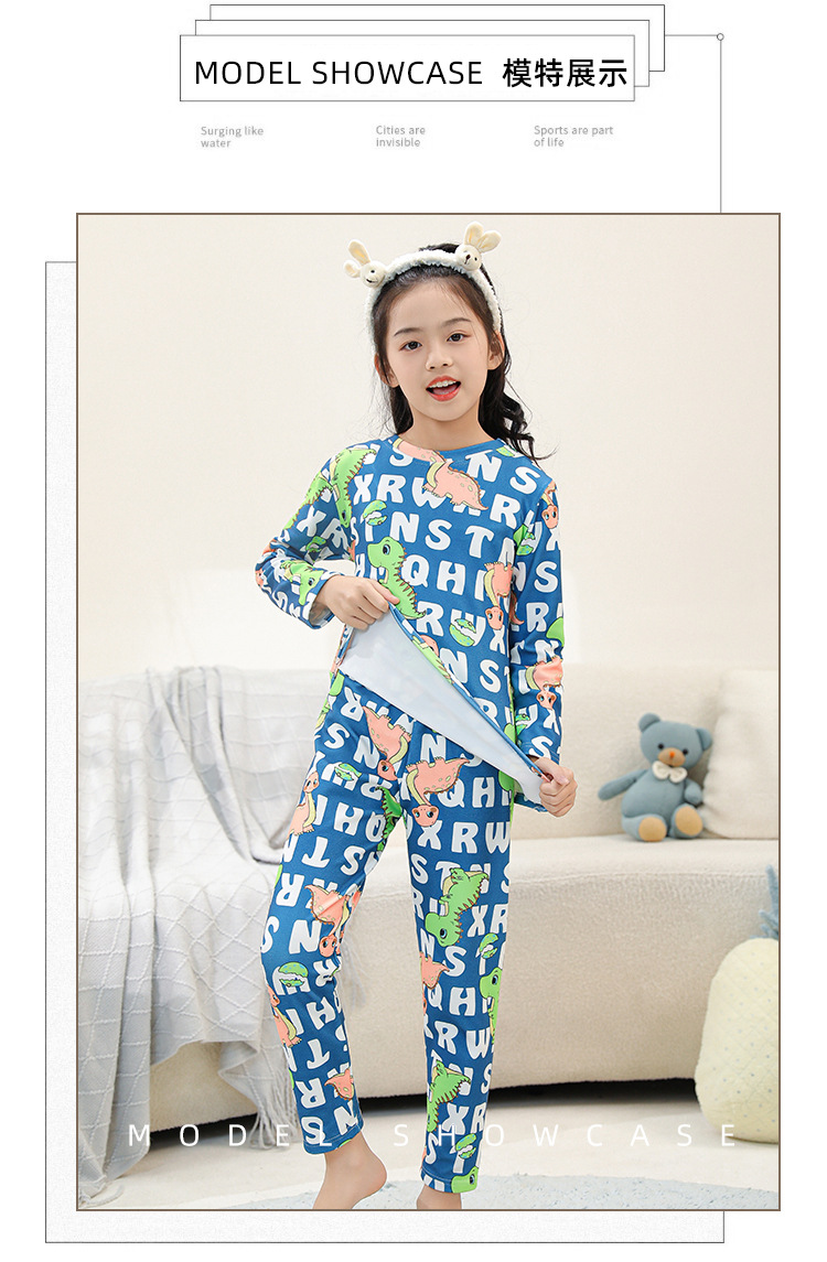 • SDT 따뜻한 라운드 넥 롱 세트-알파벳 공룡