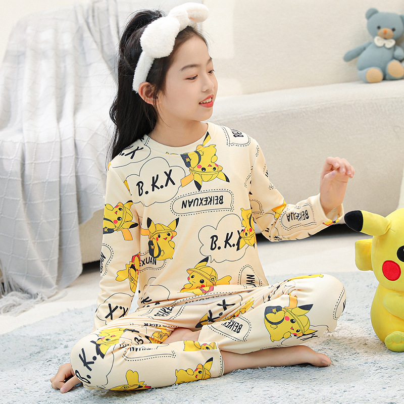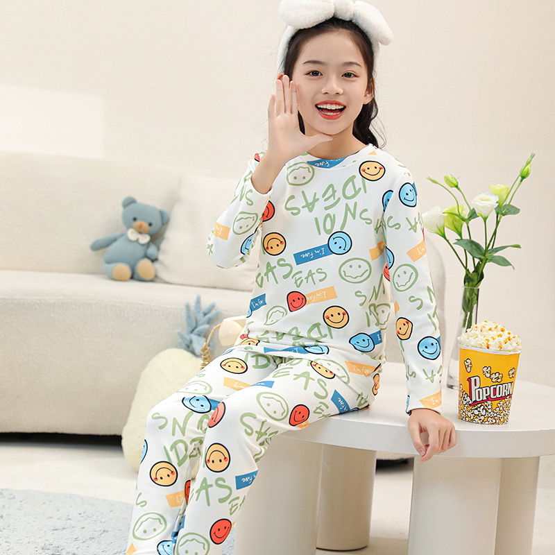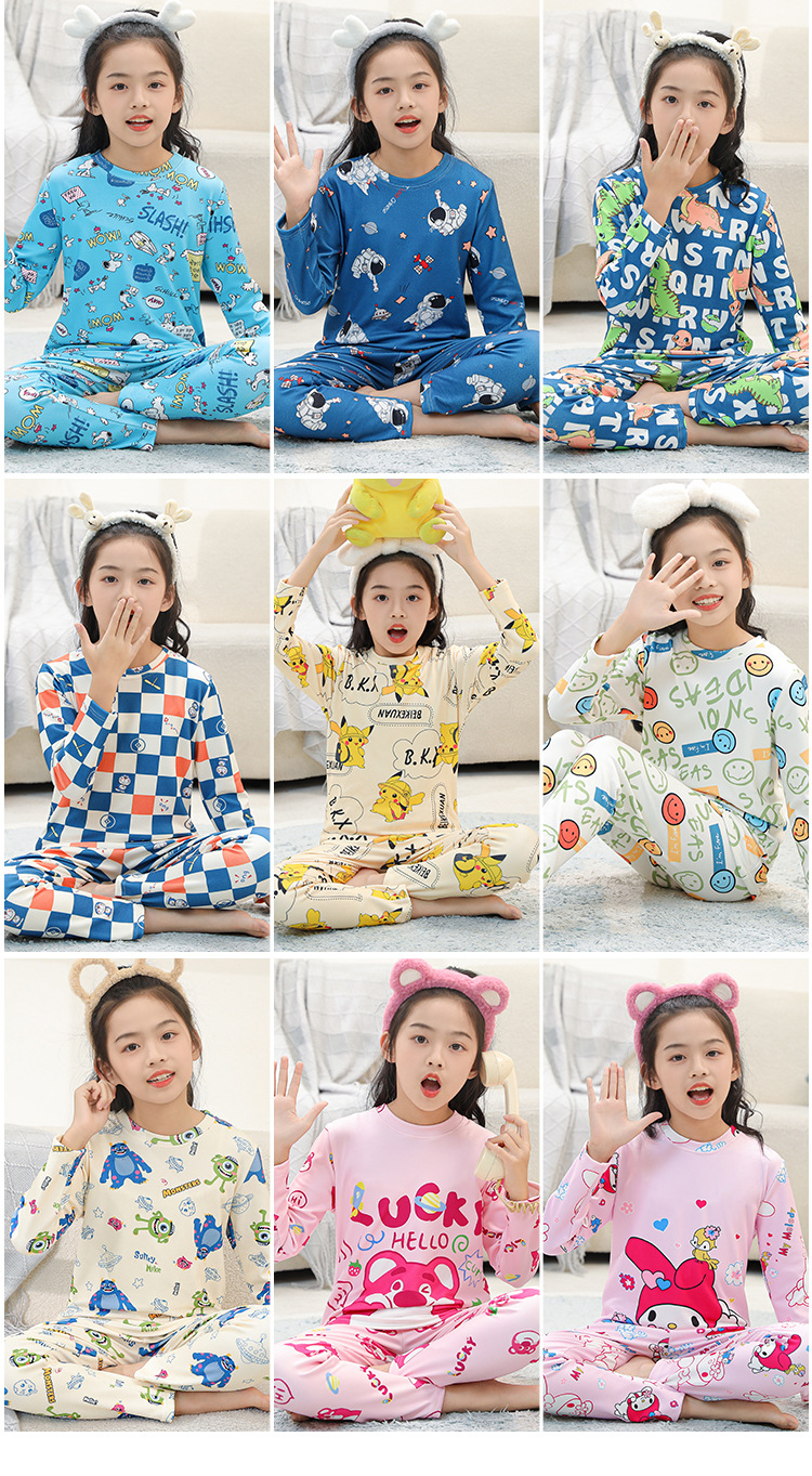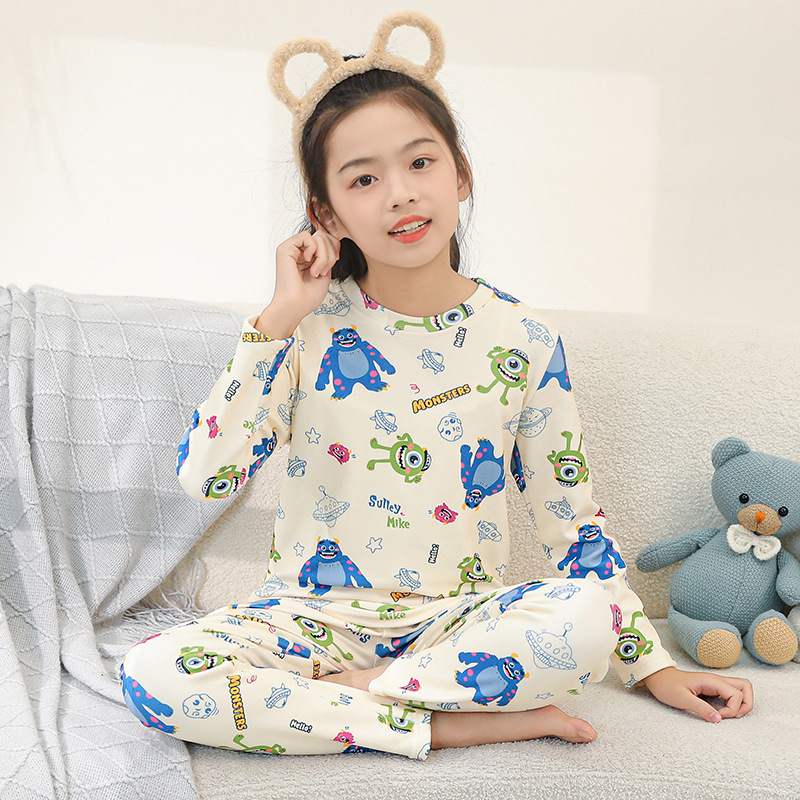 어린이 가을 옷과 바지 세트 소년 '봄과 가을 가정 옷 속옷 홈 잠옷 여아 아기 어린이 벨벳스토어 가기