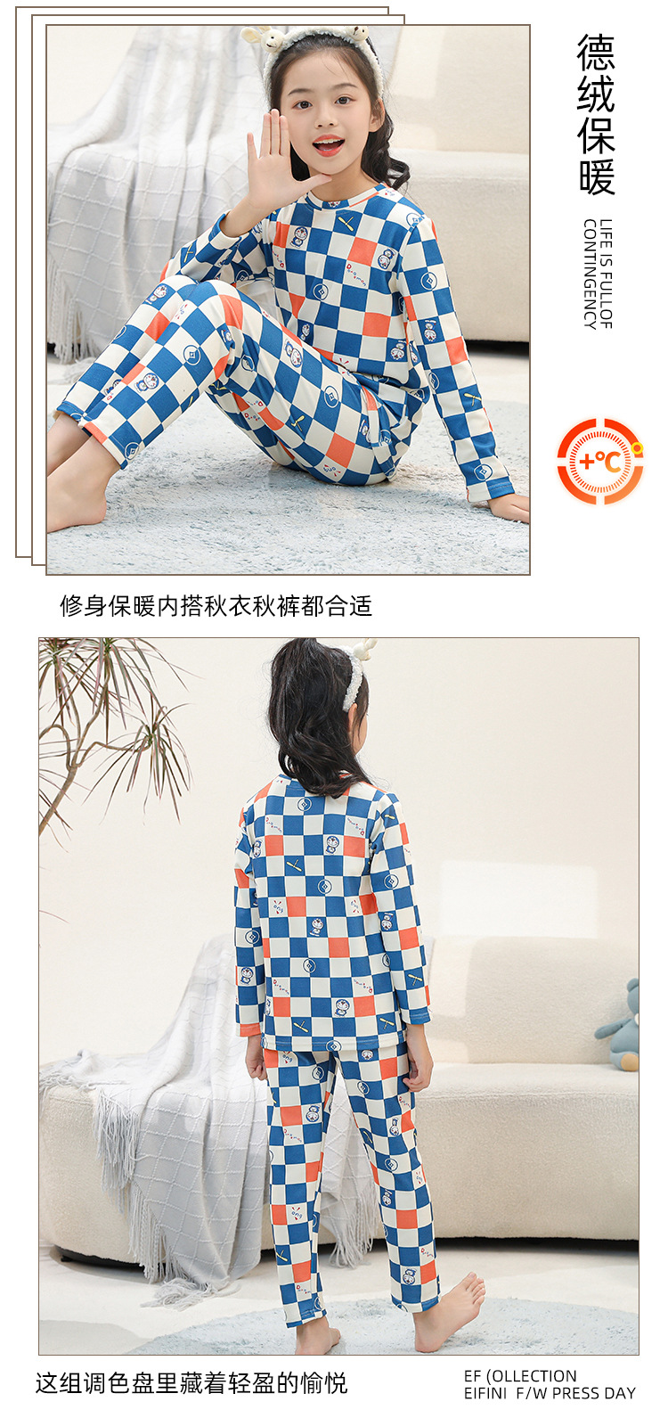 • SDT 따뜻한 라운드 넥 롱 세트 격자 무늬 징글 여성