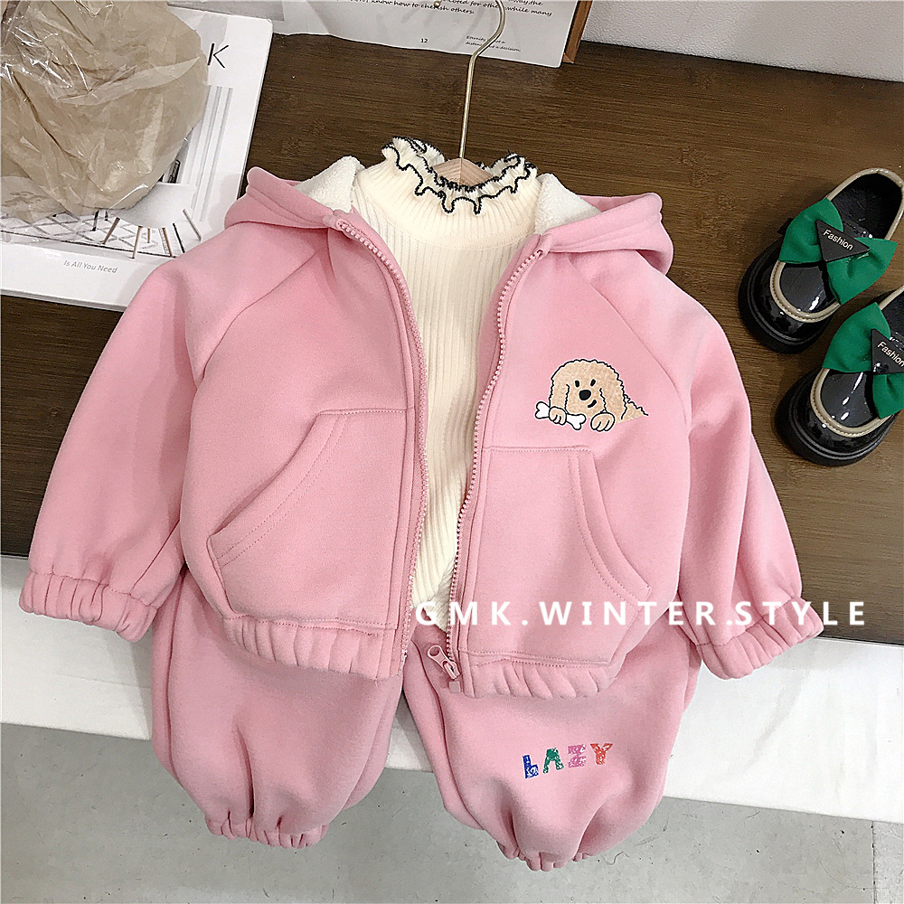 여자 플러스 벨벳 세트 2023 가을과 겨울 새로운 아기 두꺼운 스웨터 통합 벨벳 어린이 봄과 가을 패션 대외 무역스토어 가기