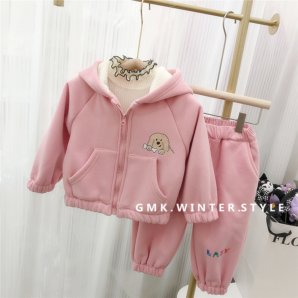 여자 플러스 벨벳 세트 2023 가을과 겨울 새로운 아기 두꺼운 스웨터 통합 벨벳 어린이 봄과 가을 패션 대외 무역