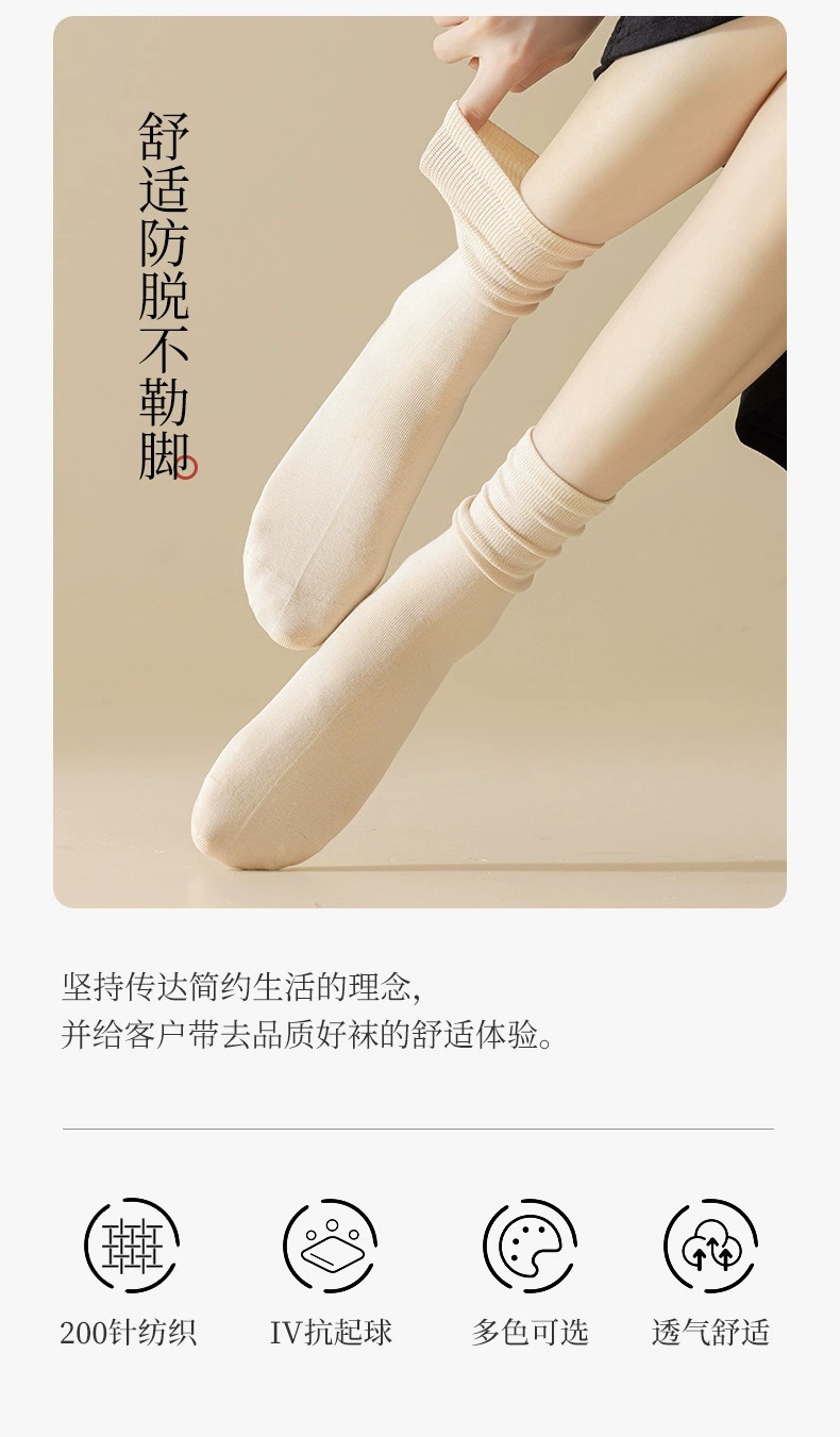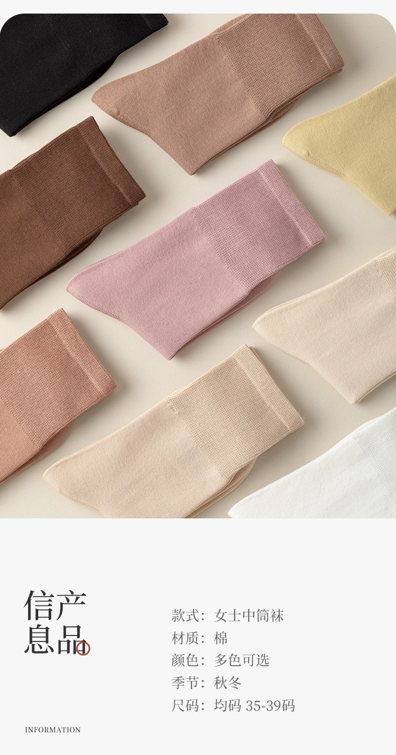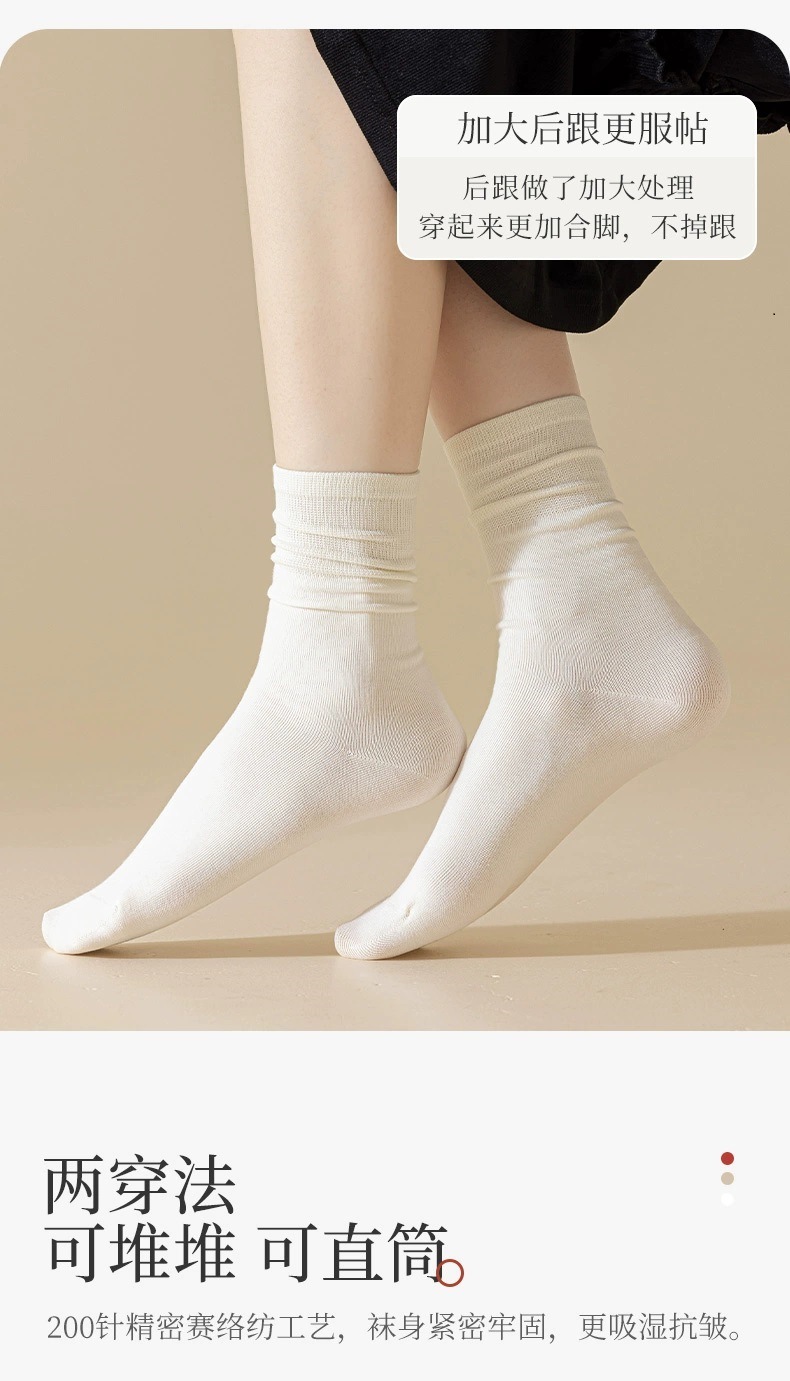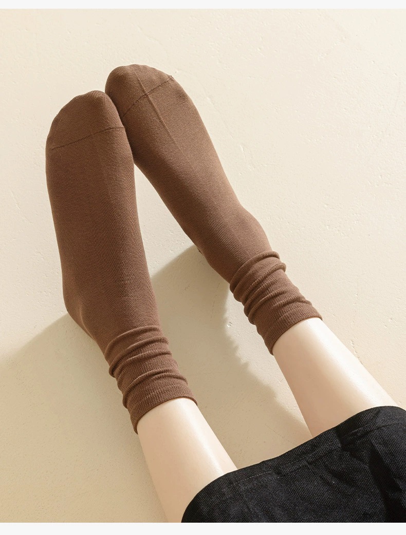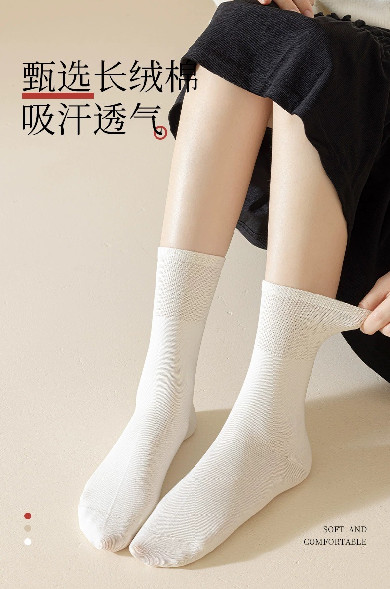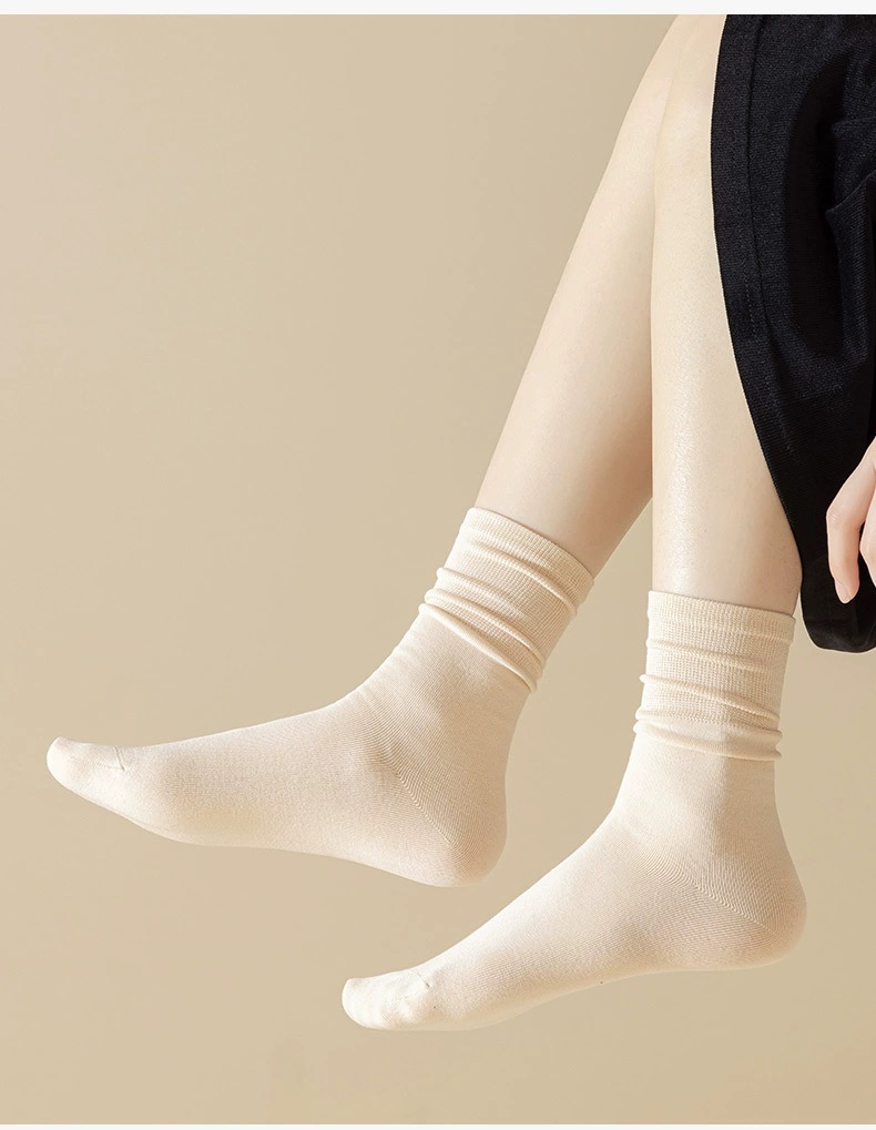 흰색 뼈없는 양말 여성 중반 종아리 양말 가을, 겨울 단색면 양말 감금 긴 튜브 파일 양말 로퍼 봄, 가을 스타킹