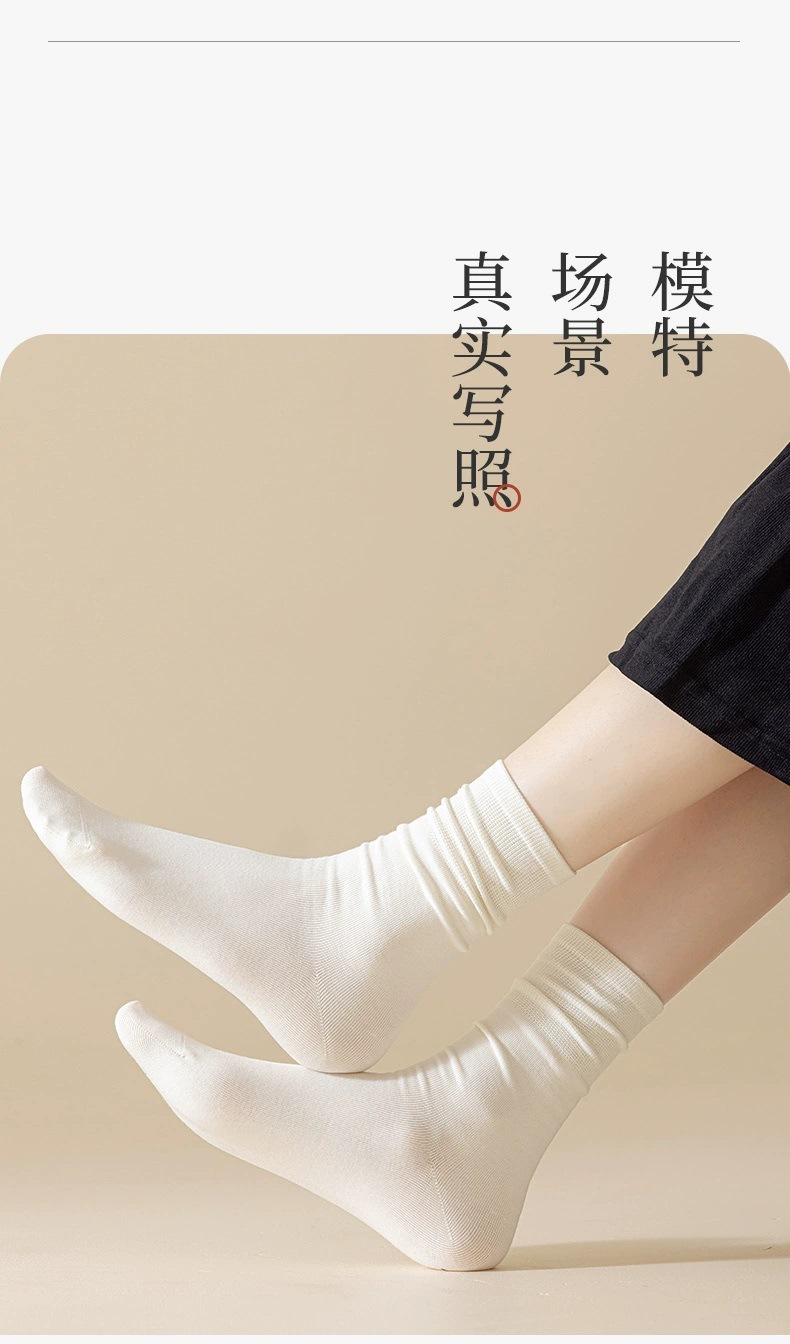 흰색 뼈없는 양말 여성 중반 종아리 양말 가을, 겨울 단색면 양말 감금 긴 튜브 파일 양말 로퍼 봄, 가을 스타킹스토어 가기