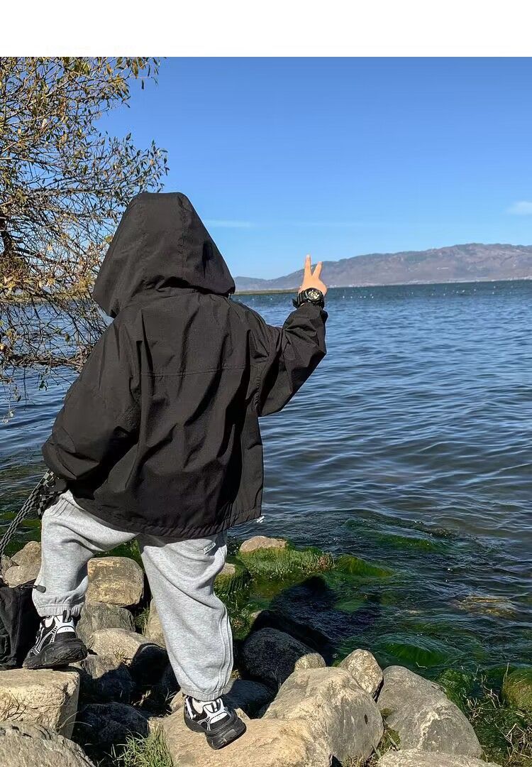 소년 2023 가을, 겨울 새로운 후드 재킷 큰 어린이 캐주얼 잘 생긴 느슨한 지퍼 재킷 재킷스토어 가기