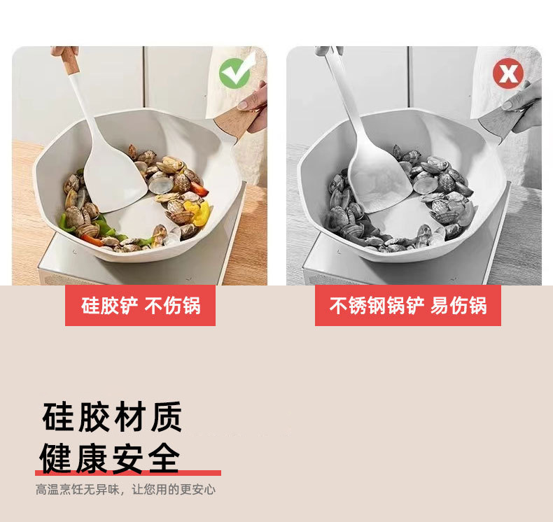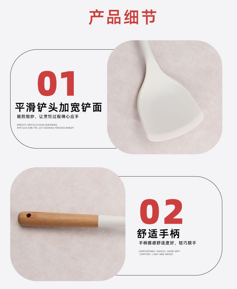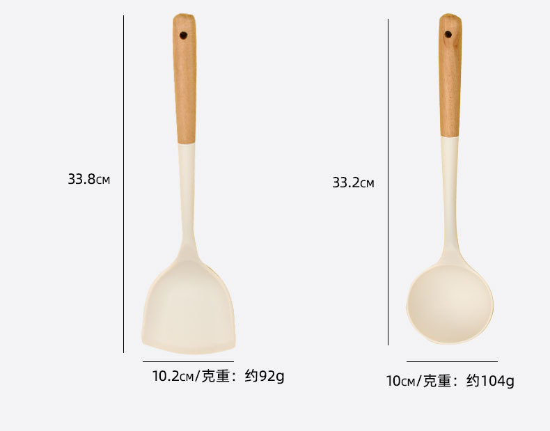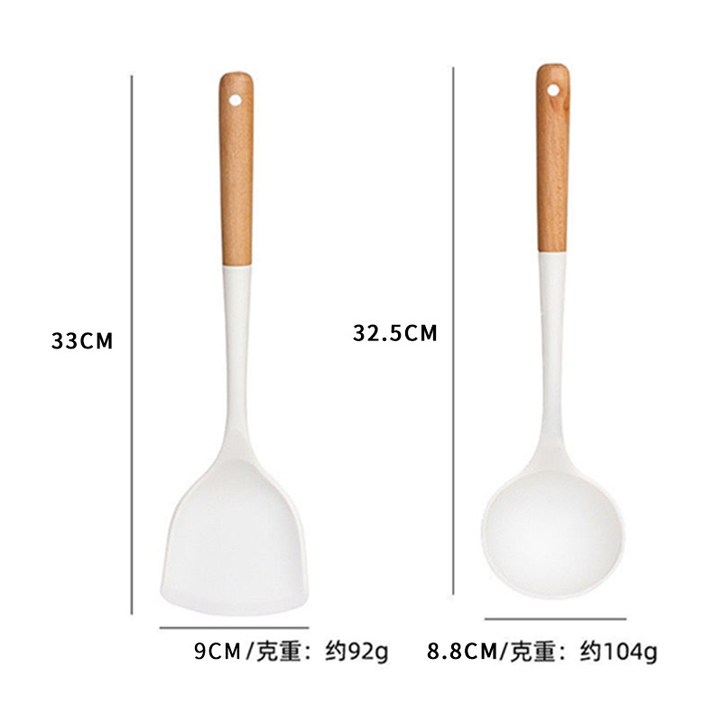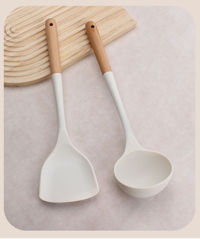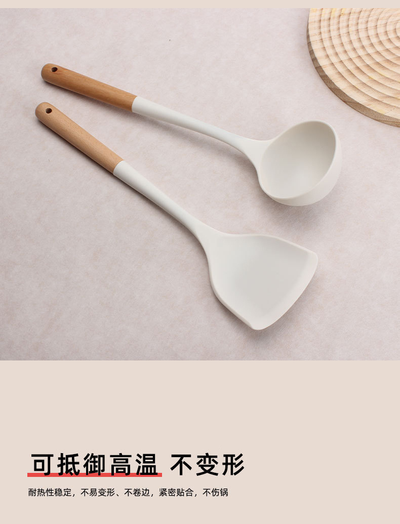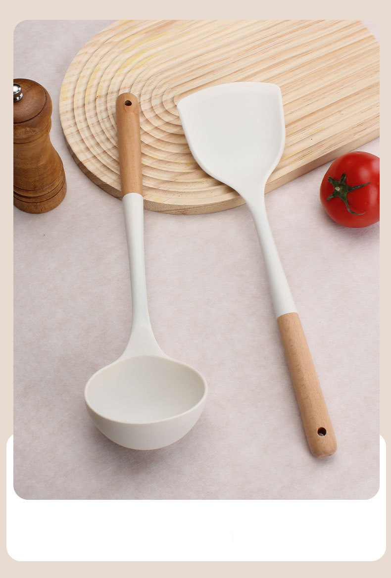 나무 손잡이 실리콘 주걱 수프 스푼 붙지 않는 요리 주걱 가정용 요리 주걱 고온 방지 주방기구 세트 재고 있음