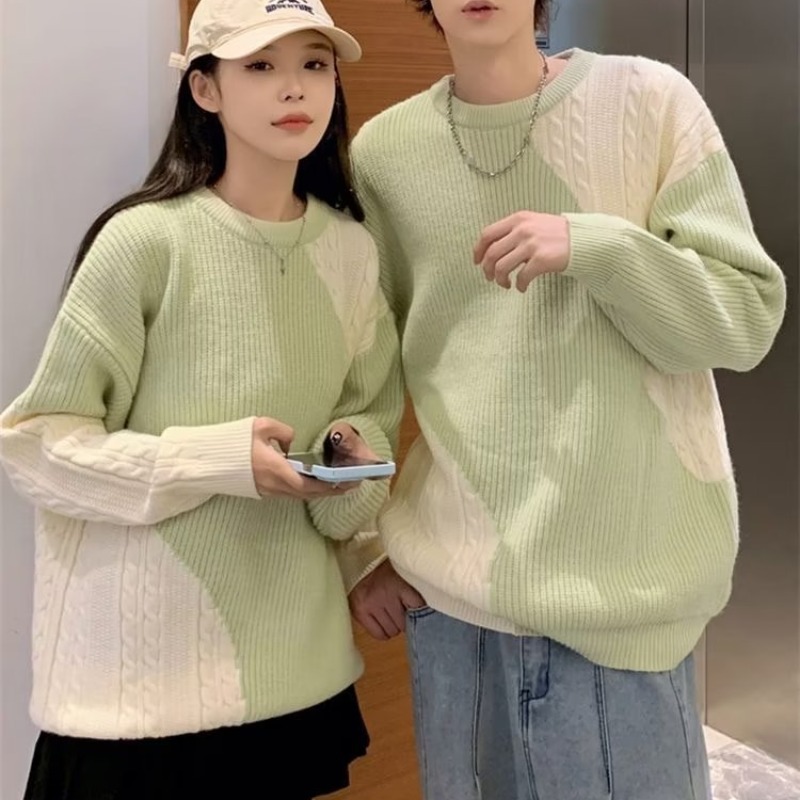 빈티지 스웨터 남성과 여성의 가을과 겨울 미국 하이 스트리트 오버 사이즈 크루넥 사슴 봉제 스웨터 커플 코트스토어 가기