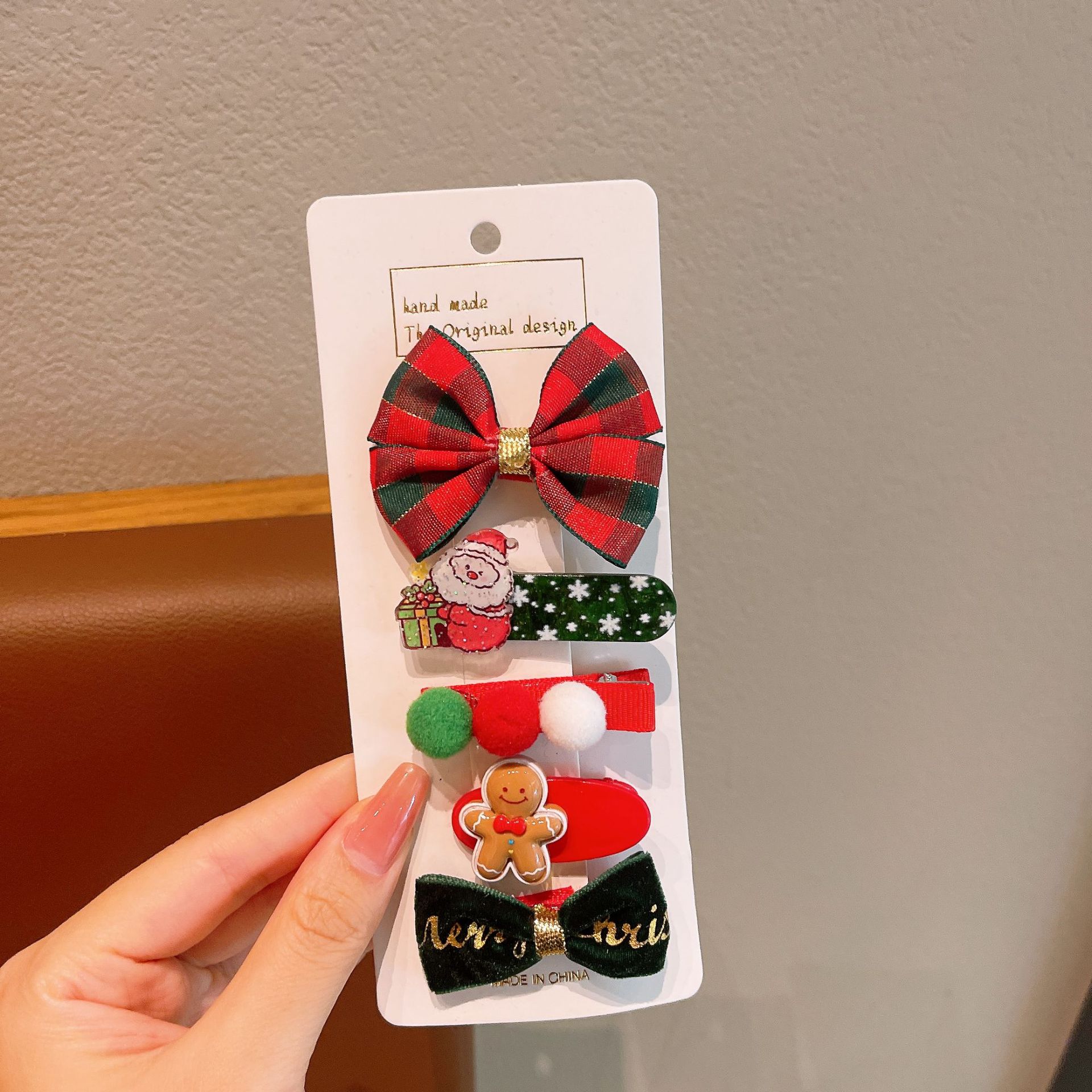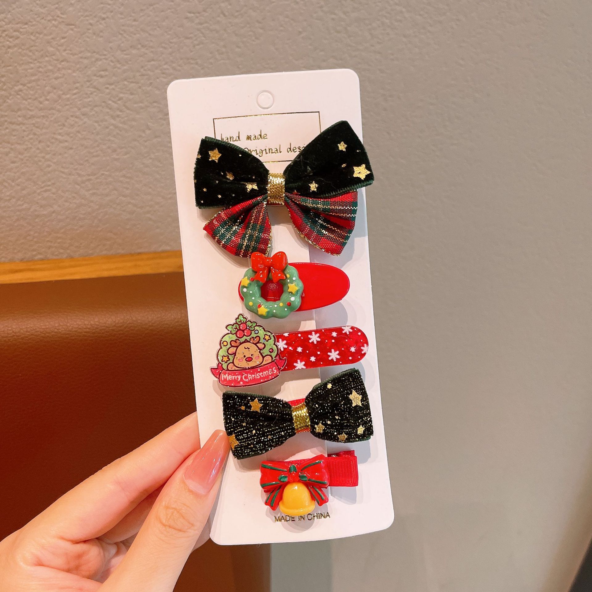 2024 새로운 어린이 크리스마스 헤어 액세서리 산타 크리스마스 트리 엘크 헤어핀 홀리데이 사이드 헤어핀 5 피스 세트