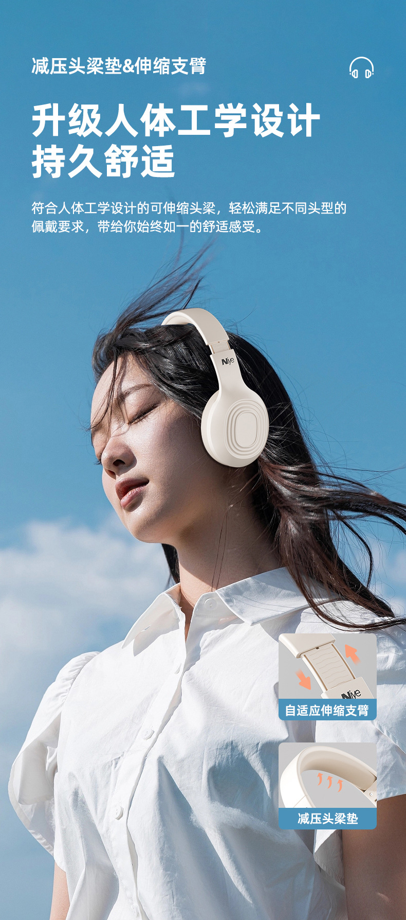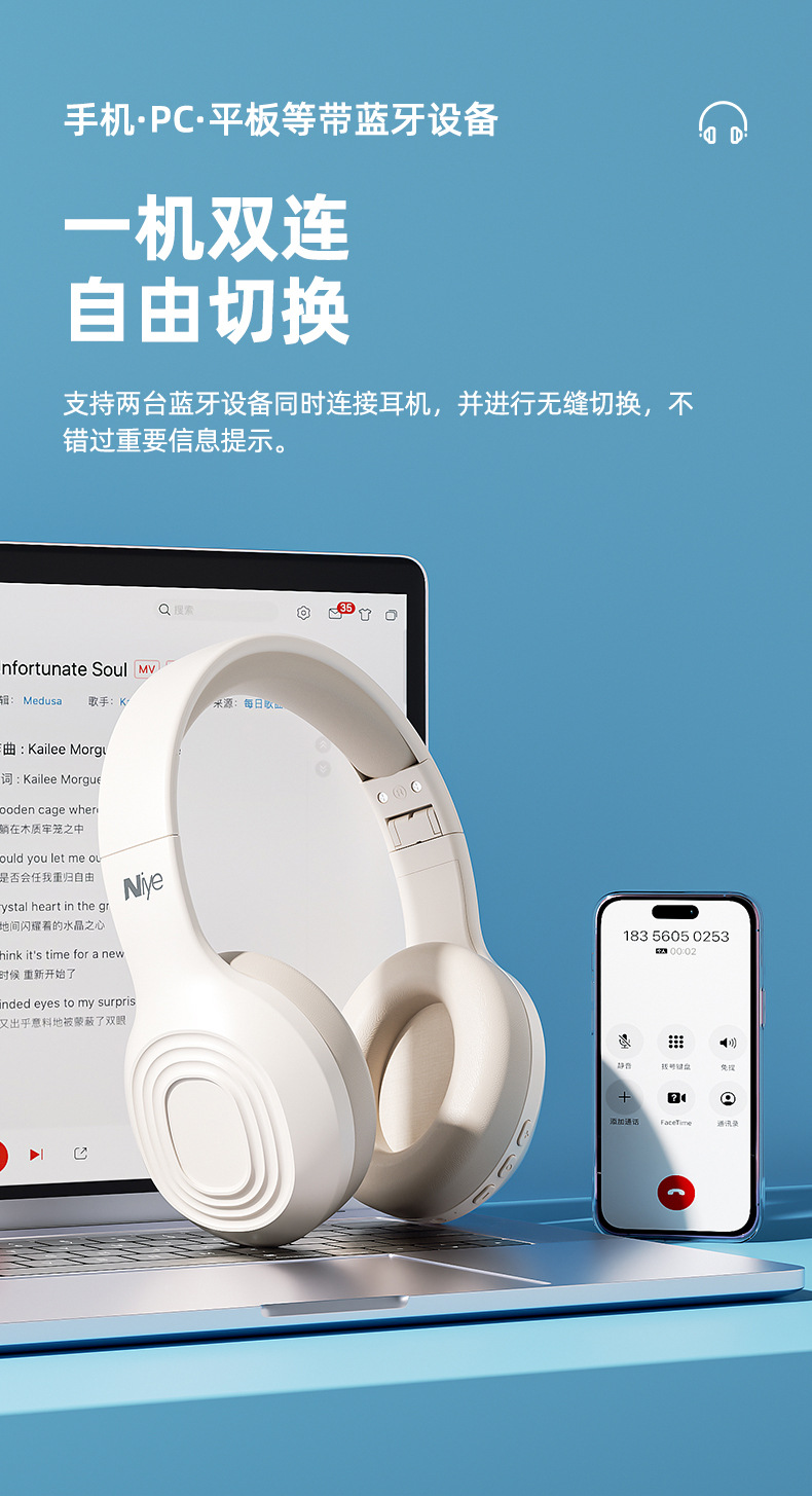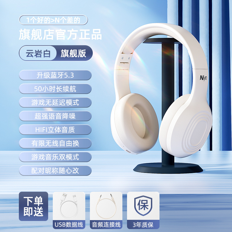 Naiya 새로운 헤드셋 무선 블루투스 헤드셋 헤드셋 음악 게임 컴퓨터 E 스포츠 헤드셋 소음 감소