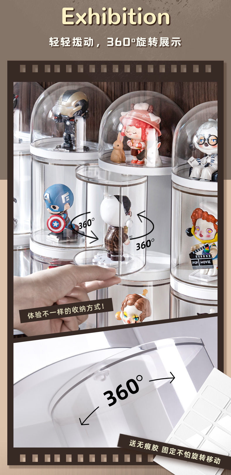 블라인드 박스 수납 선반 벽걸이형 회전 가능 피규어 수납 박스 투명 방진 버블 매트 디스플레이 박스 방진 회전