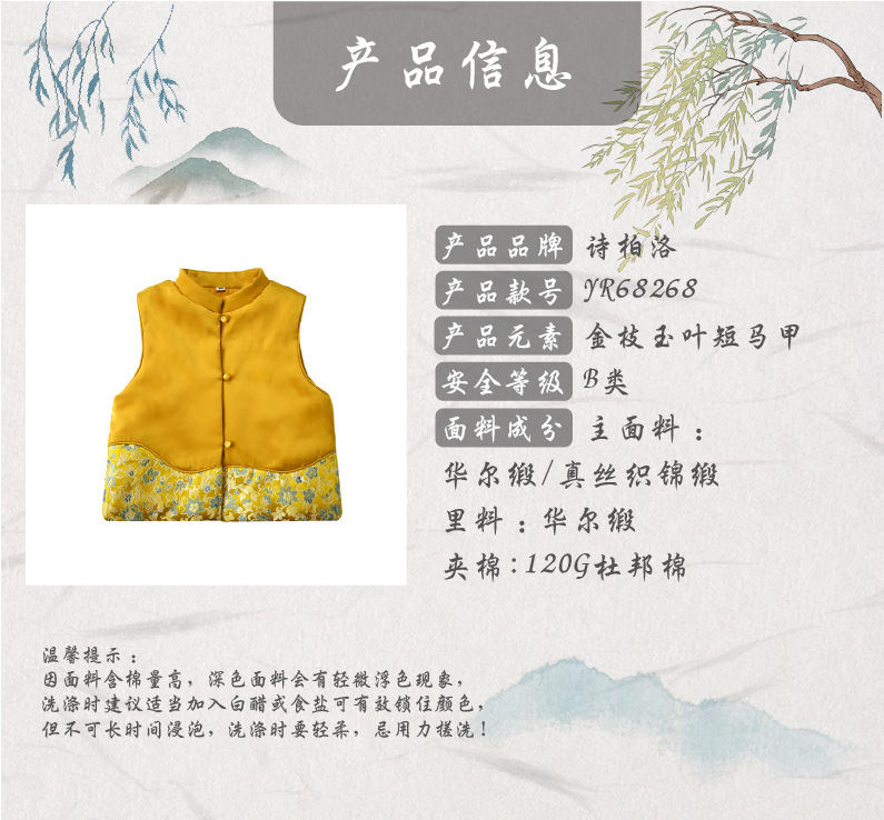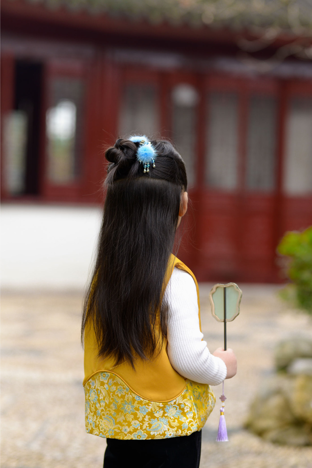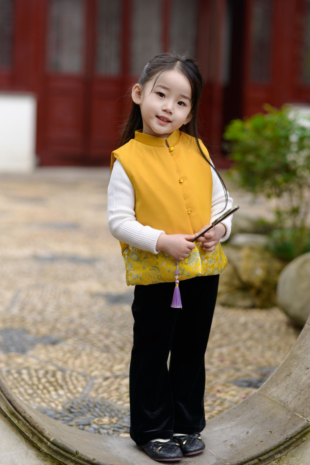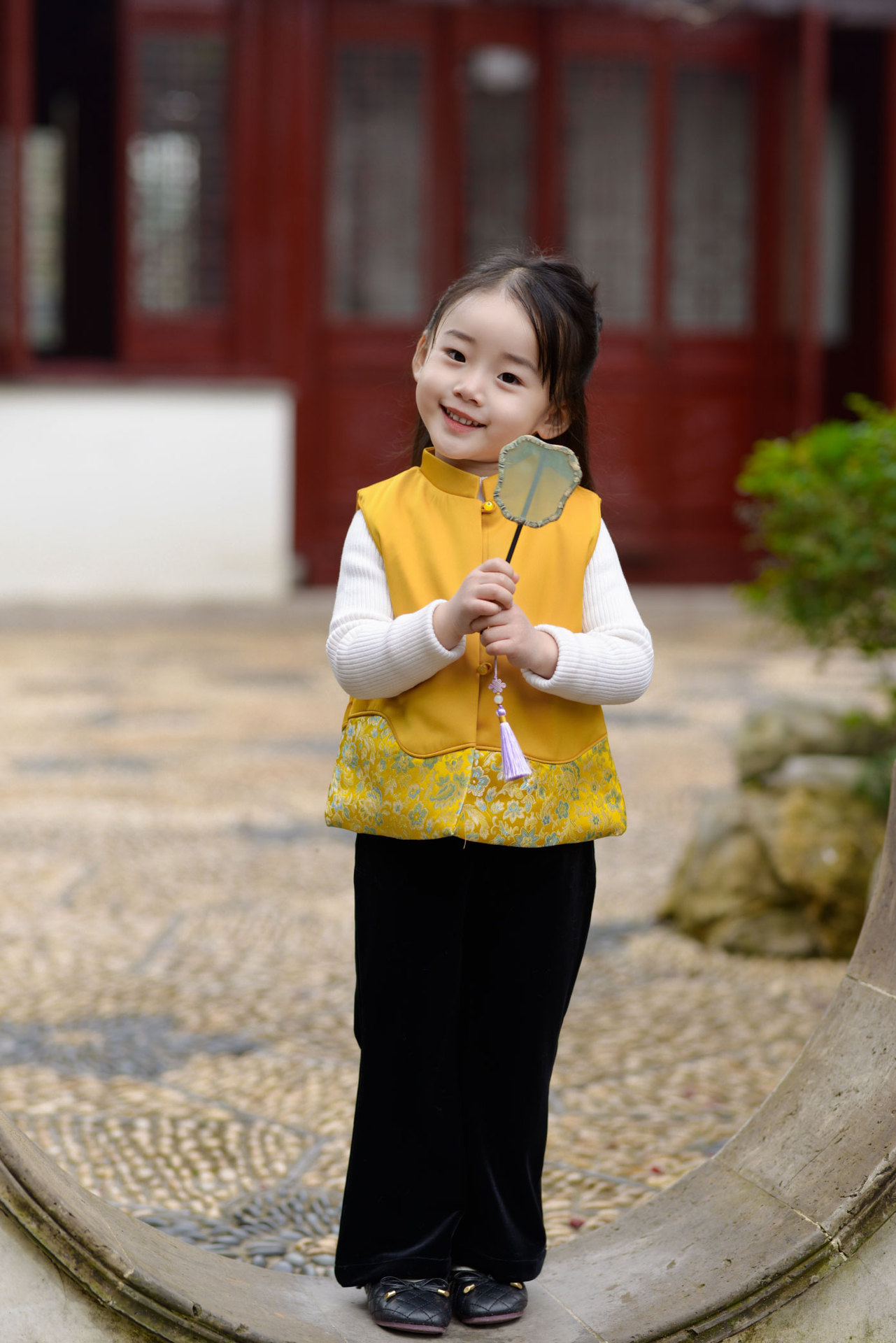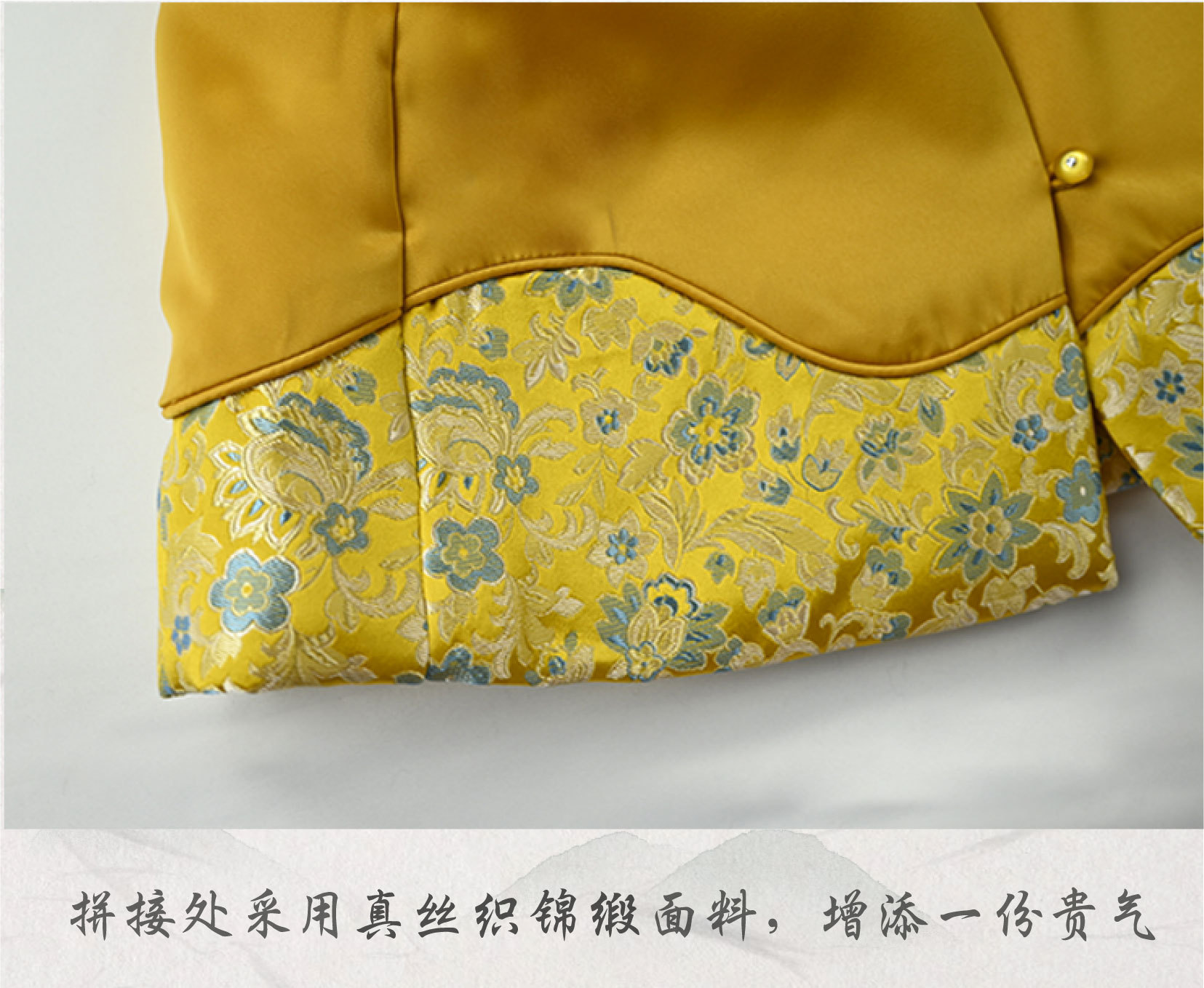 황금 노란색 조끼 가을과 겨울 여아 조끼 아기의 새해 의류 탱 세트 스티치 자카드 조끼 Hanfu스토어 가기