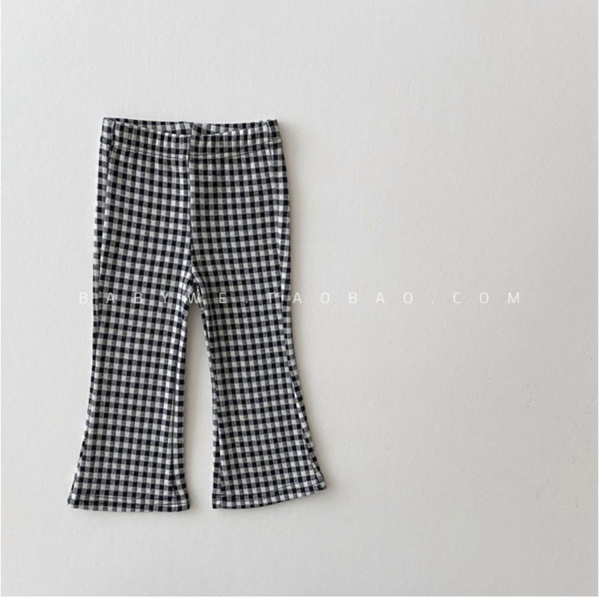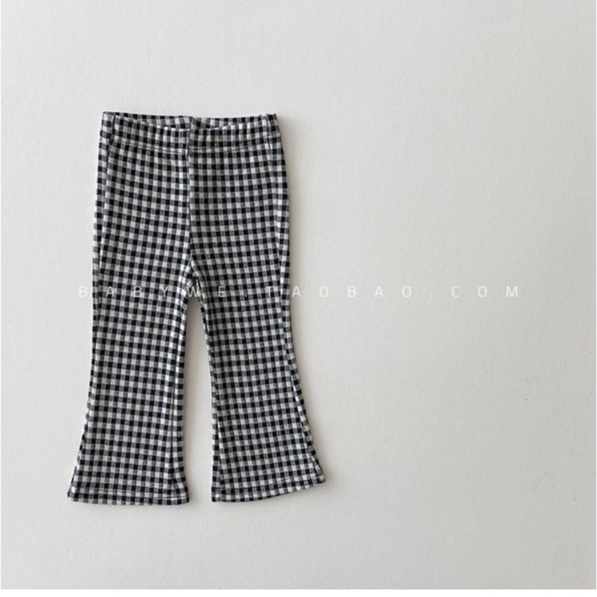 • 체크 무늬 플레어 팬츠 [얇은]]