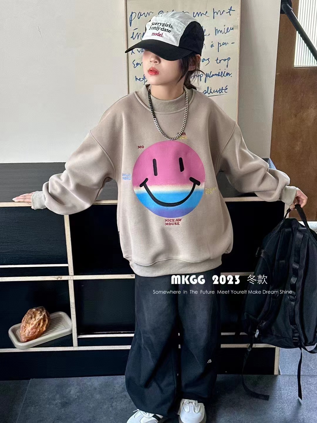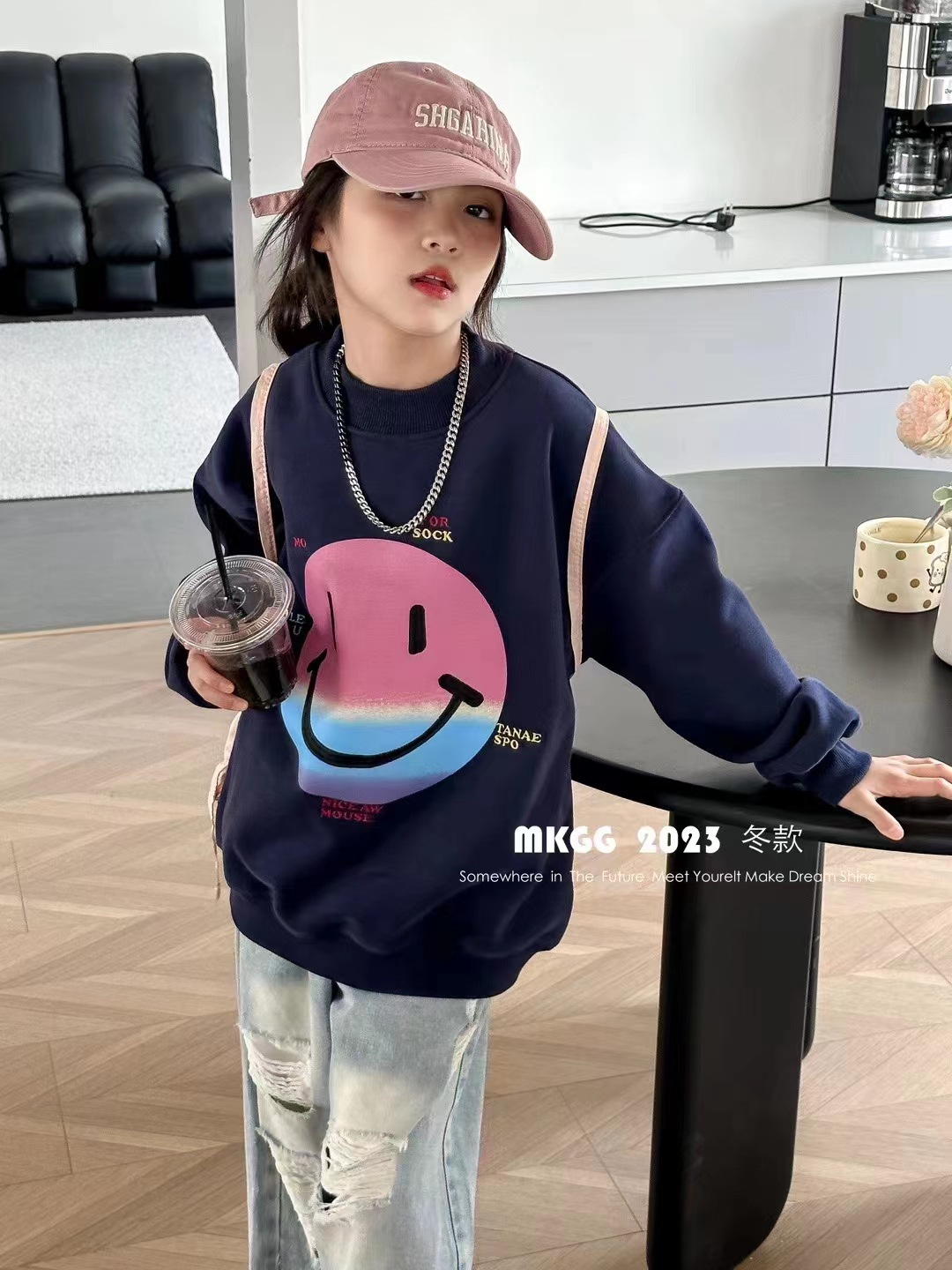 새로운 어린이 기모 스웨터 가을과 겨울 소녀 아기 두꺼운 한국어 느슨한 탑 소년 만화베이스