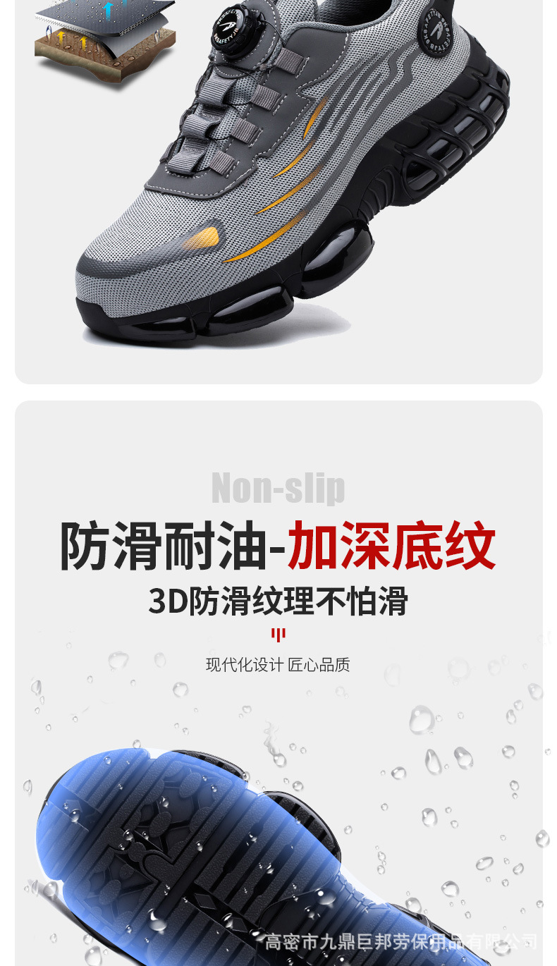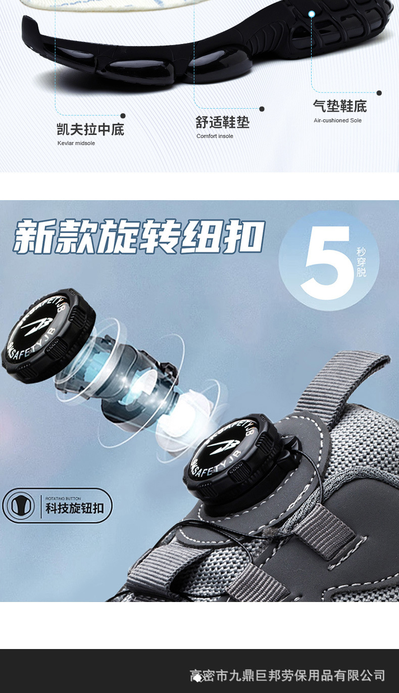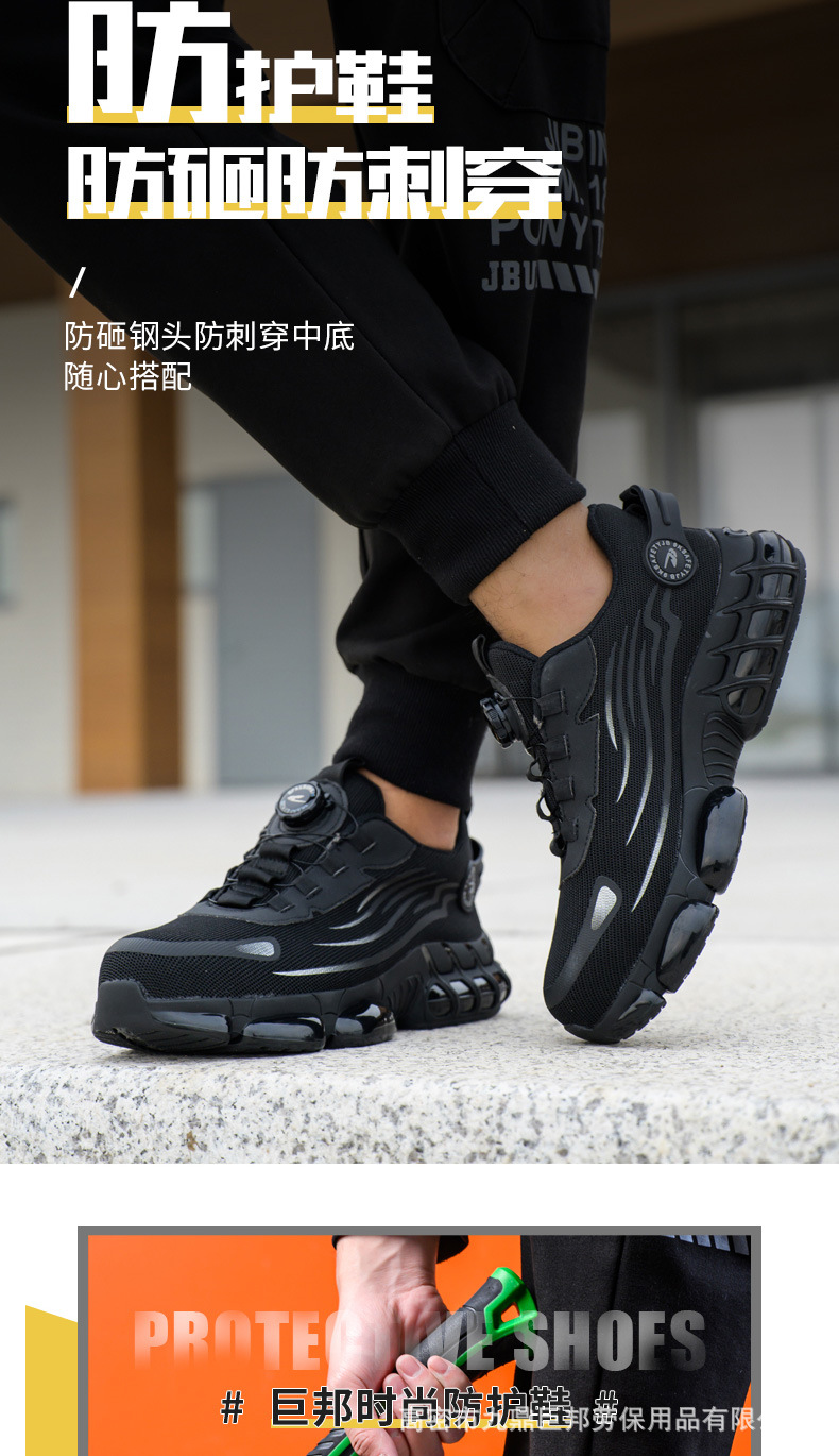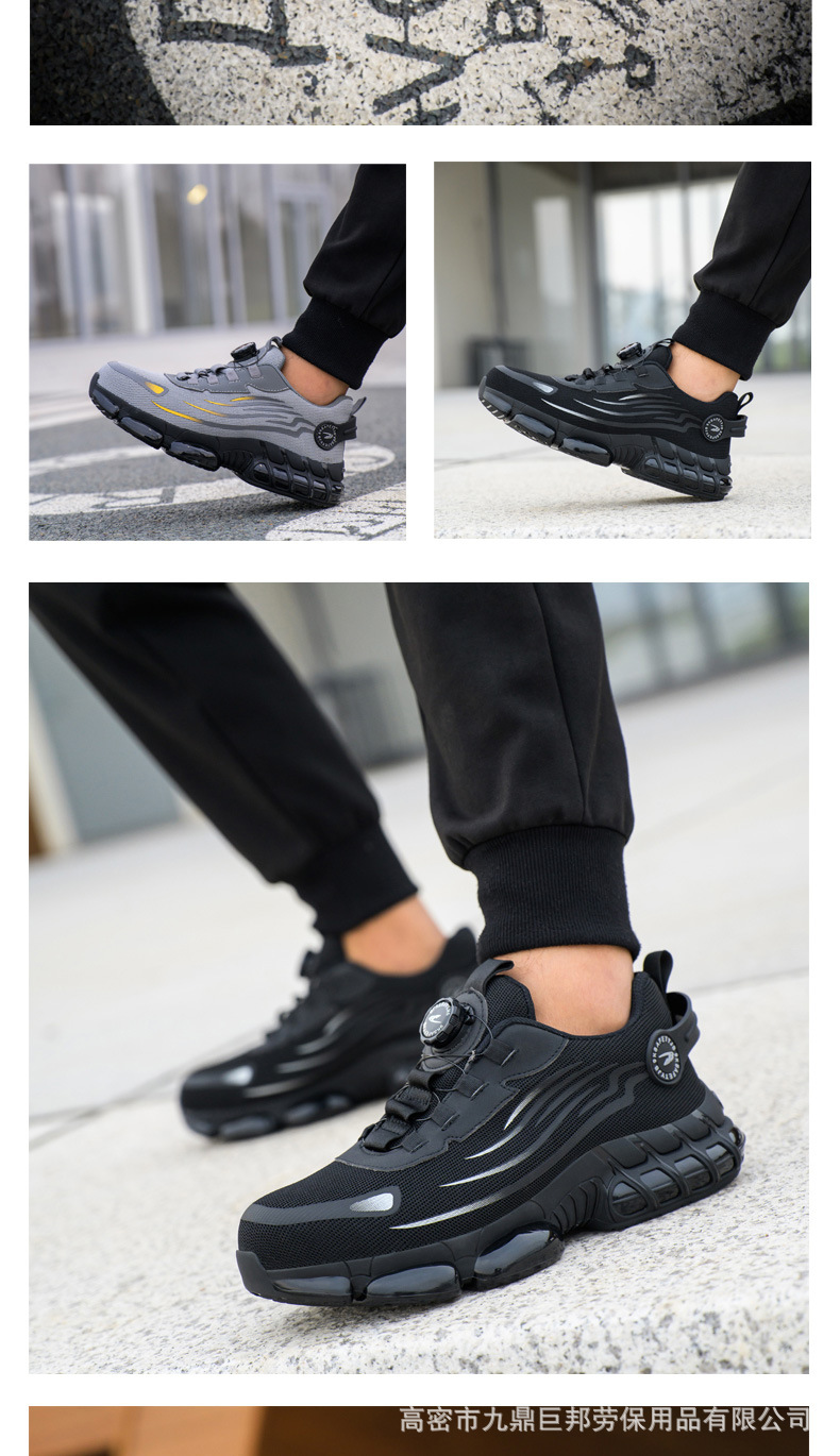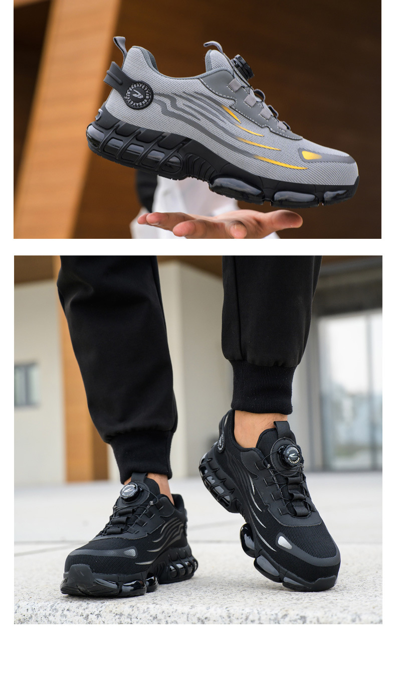 국경을 넘는 간편 신발끈 없는 안전화, 회전 버튼 남성용 안전화, 플라이 니트 경량 통기성 안전화스토어 가기